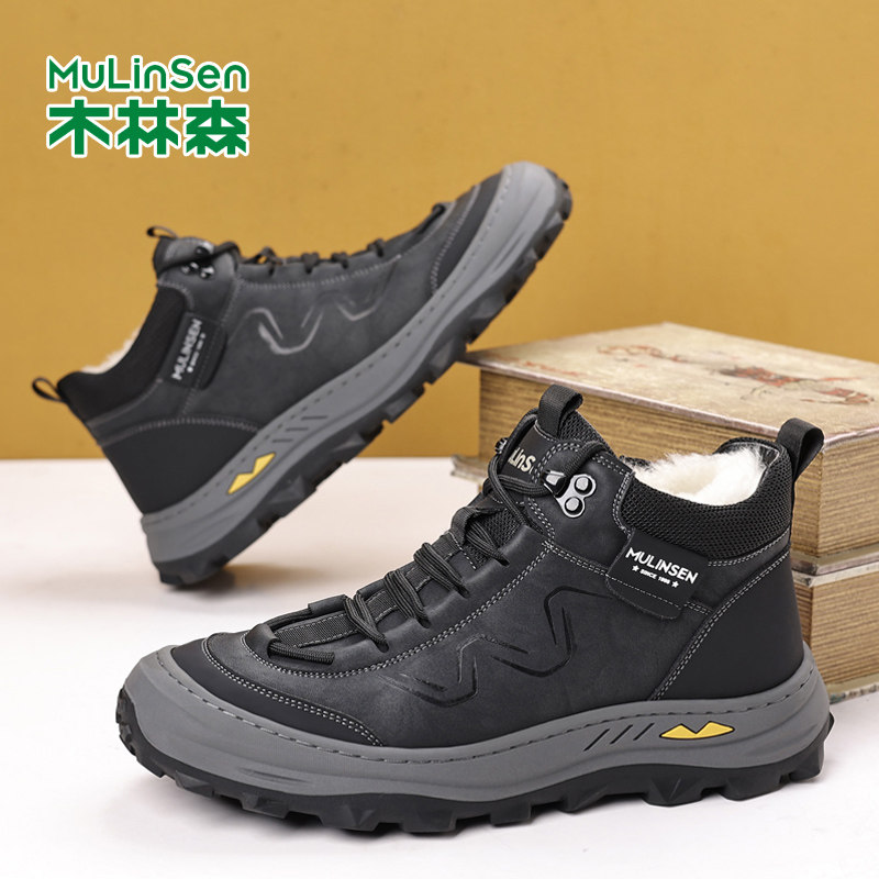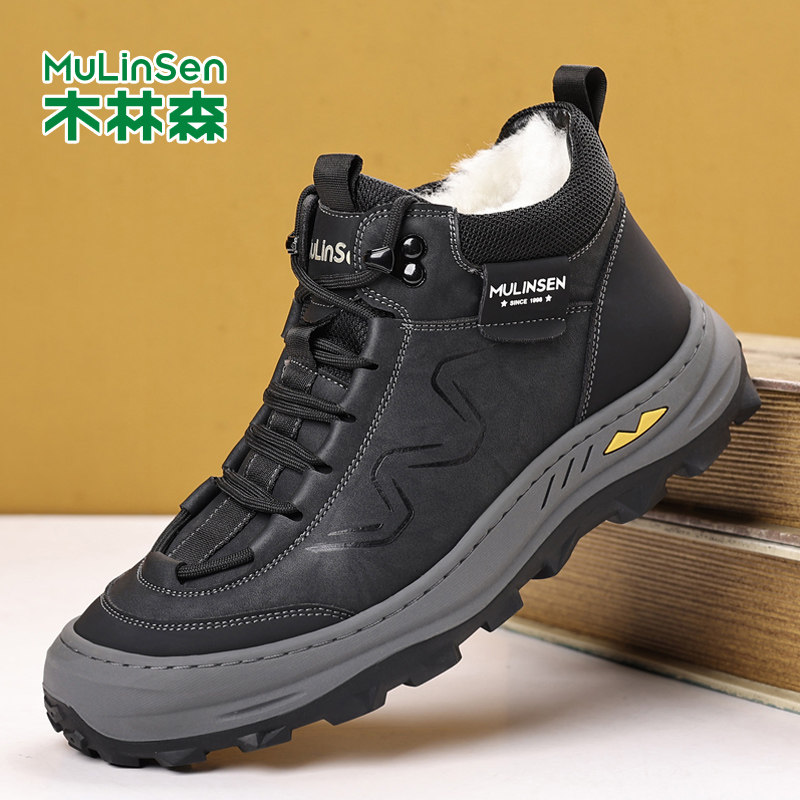 木林森雪地靴男士羊毛大棉鞋冬季加绒厚底高帮休闲鞋东北保暖皮鞋