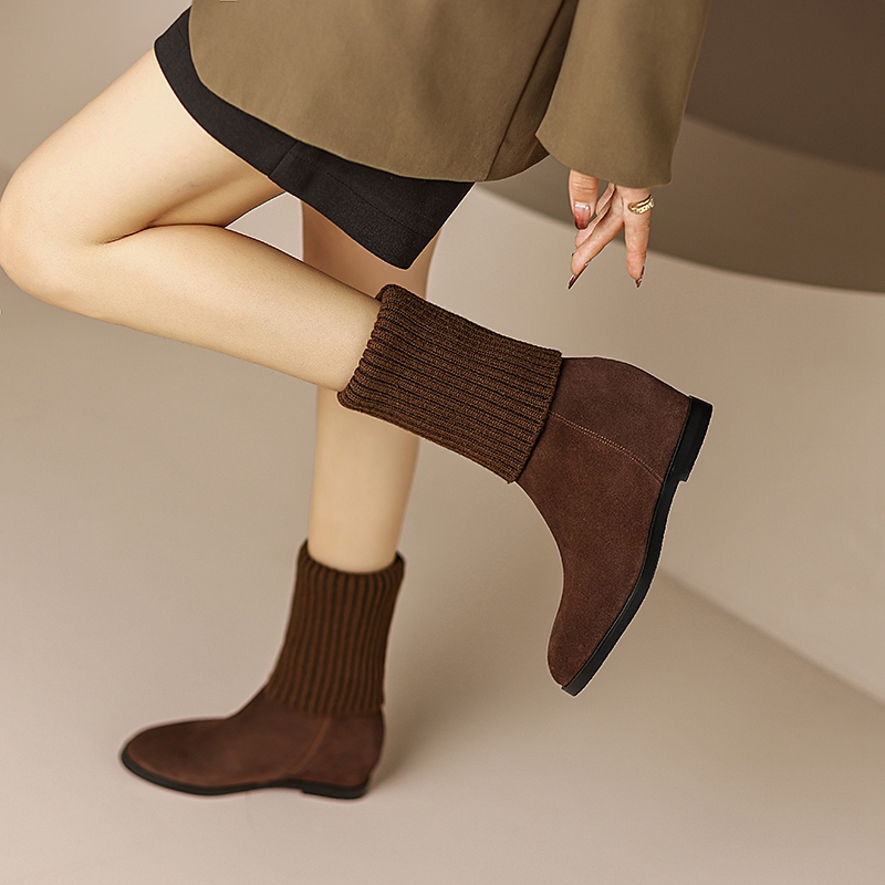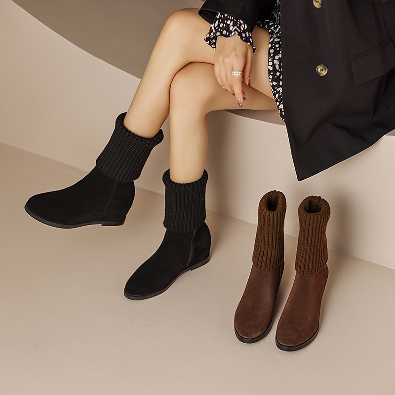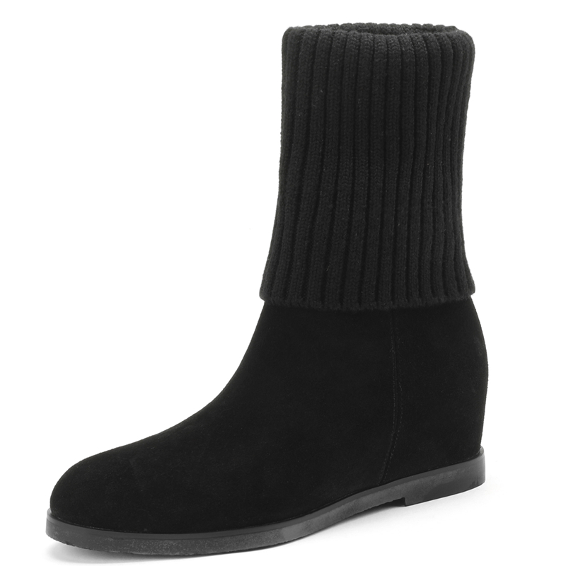 真皮内增高毛线瘦瘦女靴两穿弹力雪地靴磨砂针织中筒短靴时尚百搭