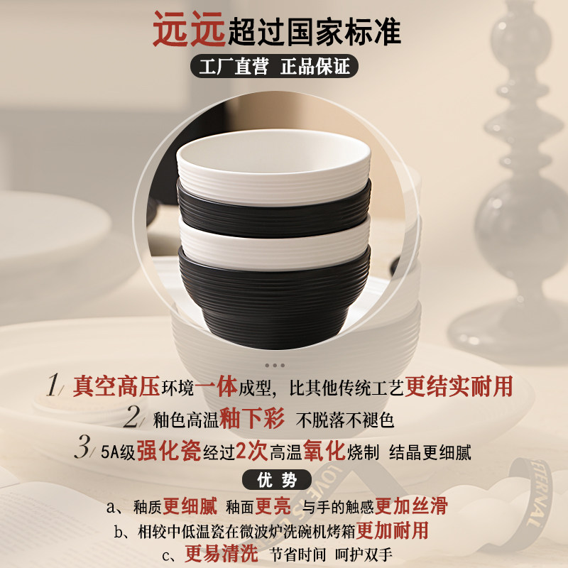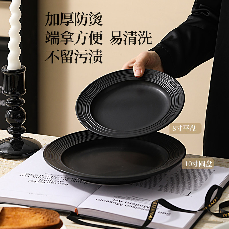 sisin诗心 中古黑白碗家用釉下彩碗碟套装家用餐具陶瓷汤碗盘家用