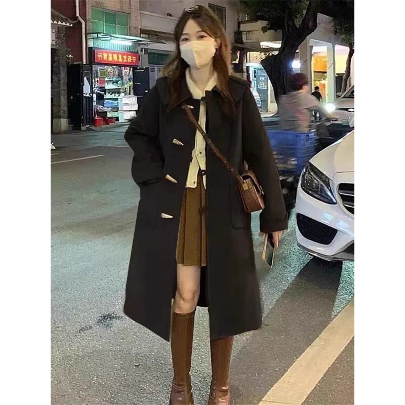 牛角扣加绒加厚大衣女2025秋冬季新款学院风小个子赫本风毛呢外套