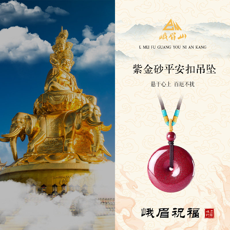 峨眉山高含量朱砂平安扣吊坠紫金砂项链护身符男女款本命年礼物