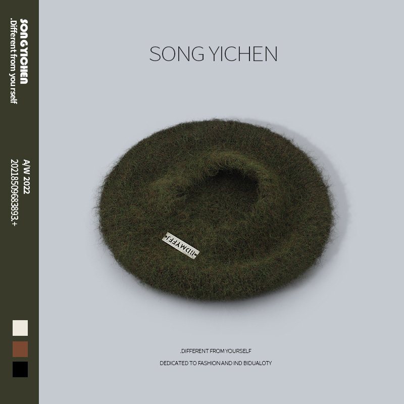 日系马海毛铁标针织贝雷帽女