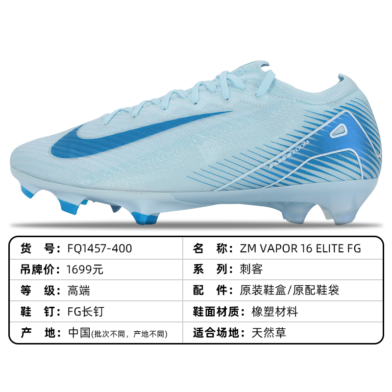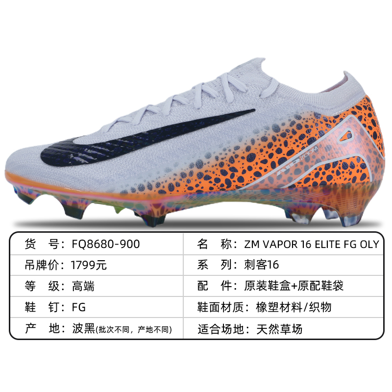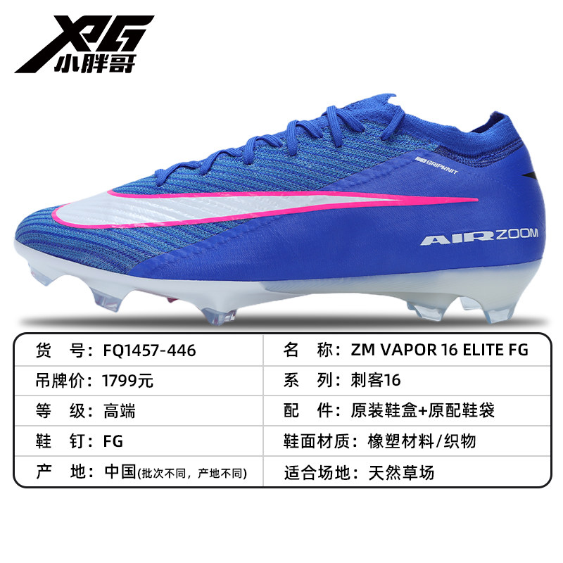 小胖哥Nike耐克刺客16高端FG真草长钉Zoom缓震低帮成人足球鞋男女