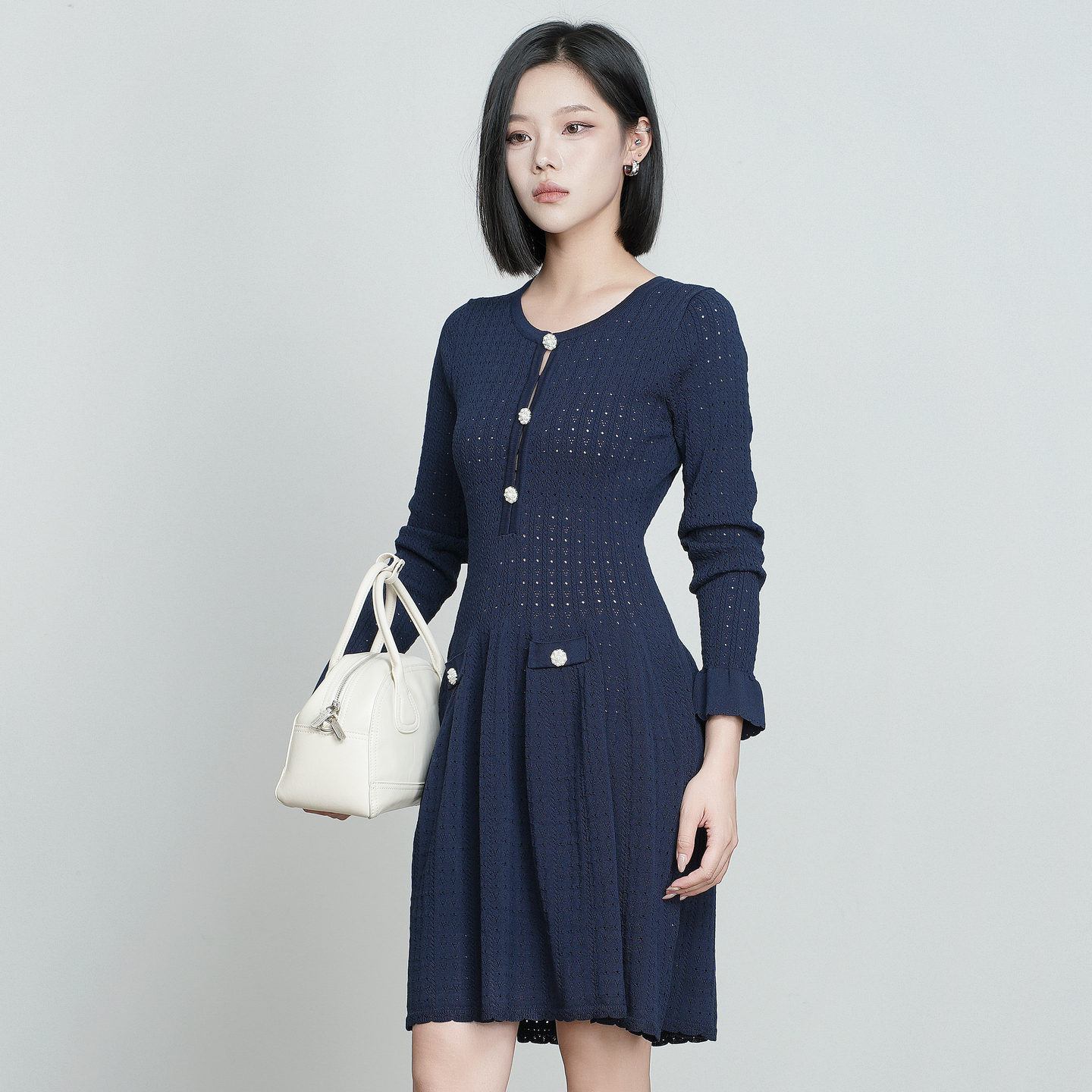 Migaino曼娅奴女装秋季新款设计感修身显瘦优雅长袖针织连衣裙