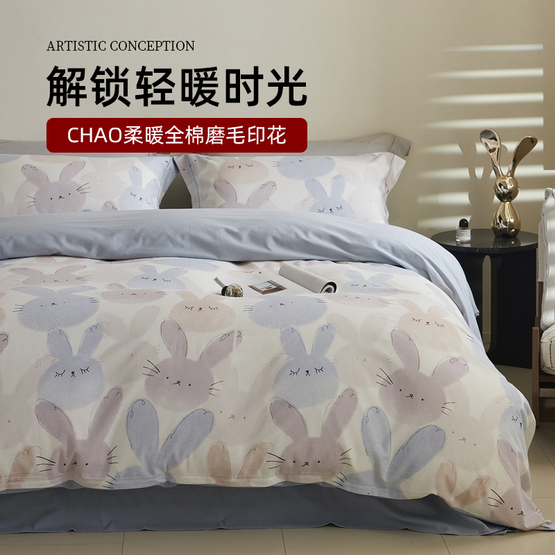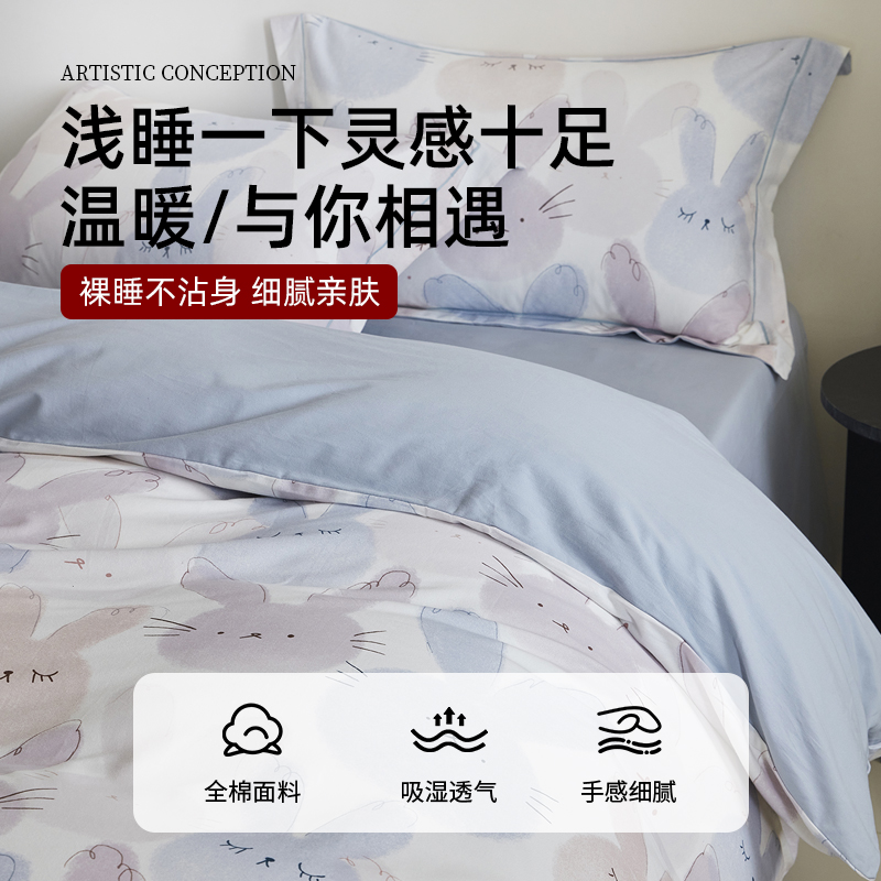 无印良品卡通全棉磨毛床上四件套床单被套罩儿童学生床品三件套