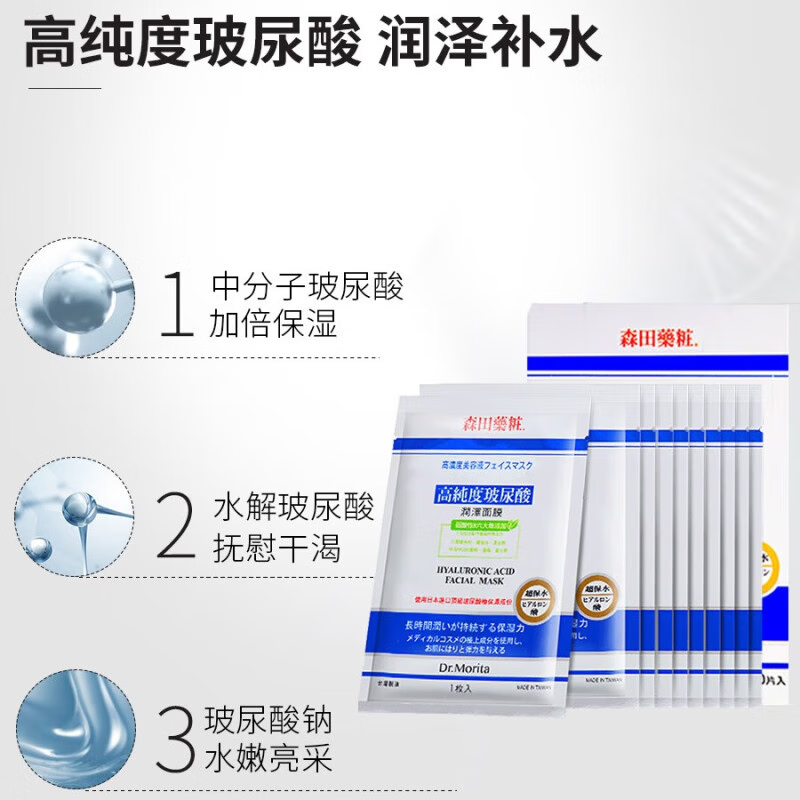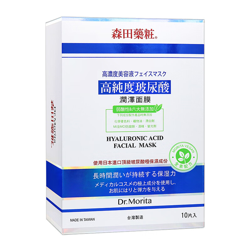 森田药妆高纯度玻尿酸润泽面膜10片夏季熬夜补水保湿舒缓修护正品