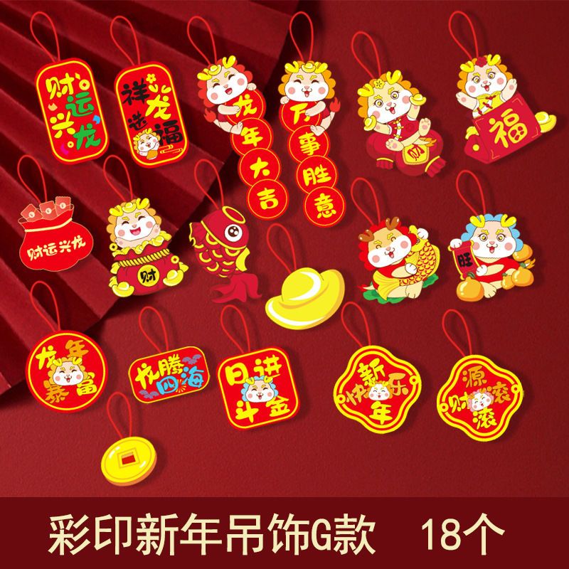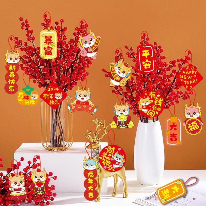 2024新年装饰品春节室内植物盆栽喜庆小灯笼发财树上挂件过年