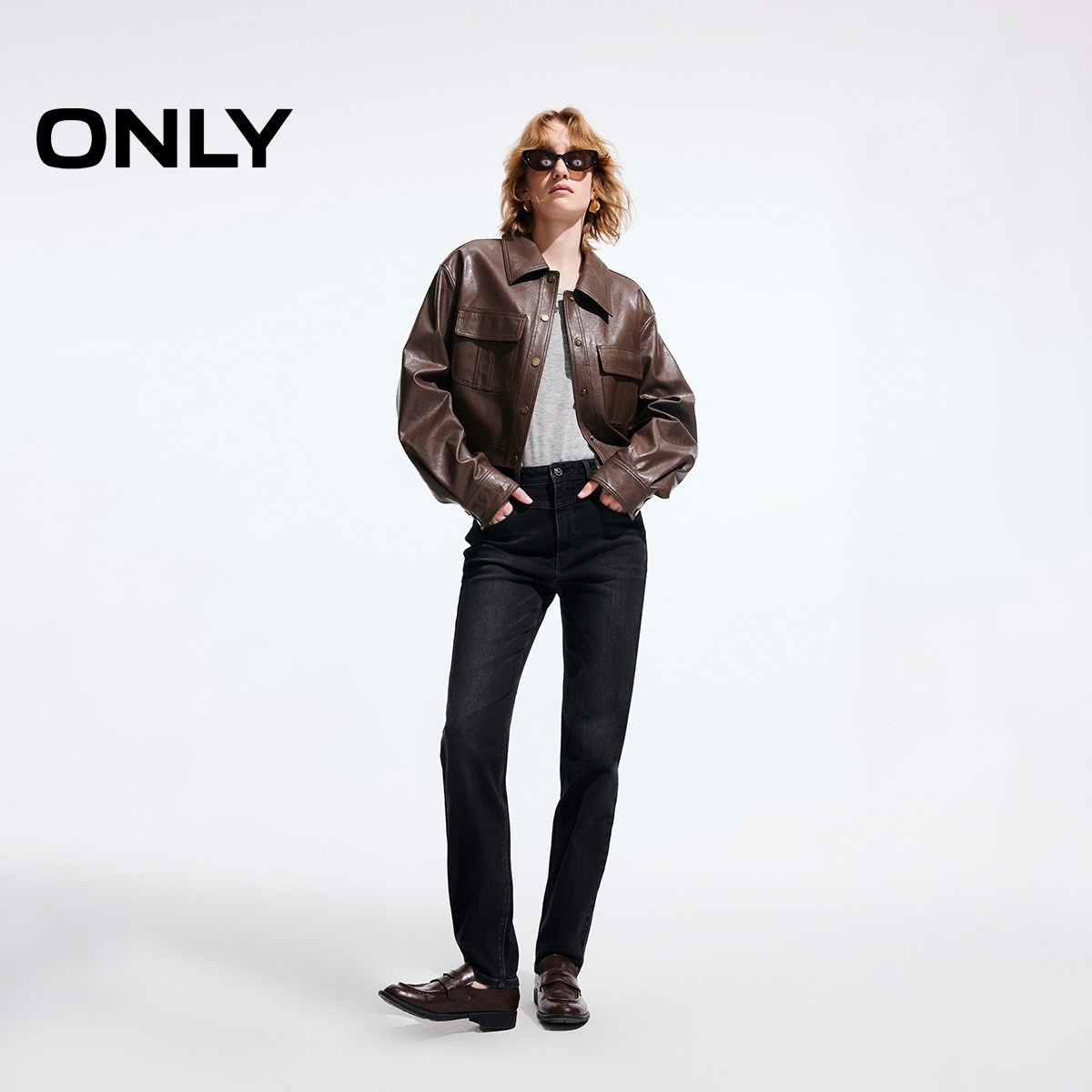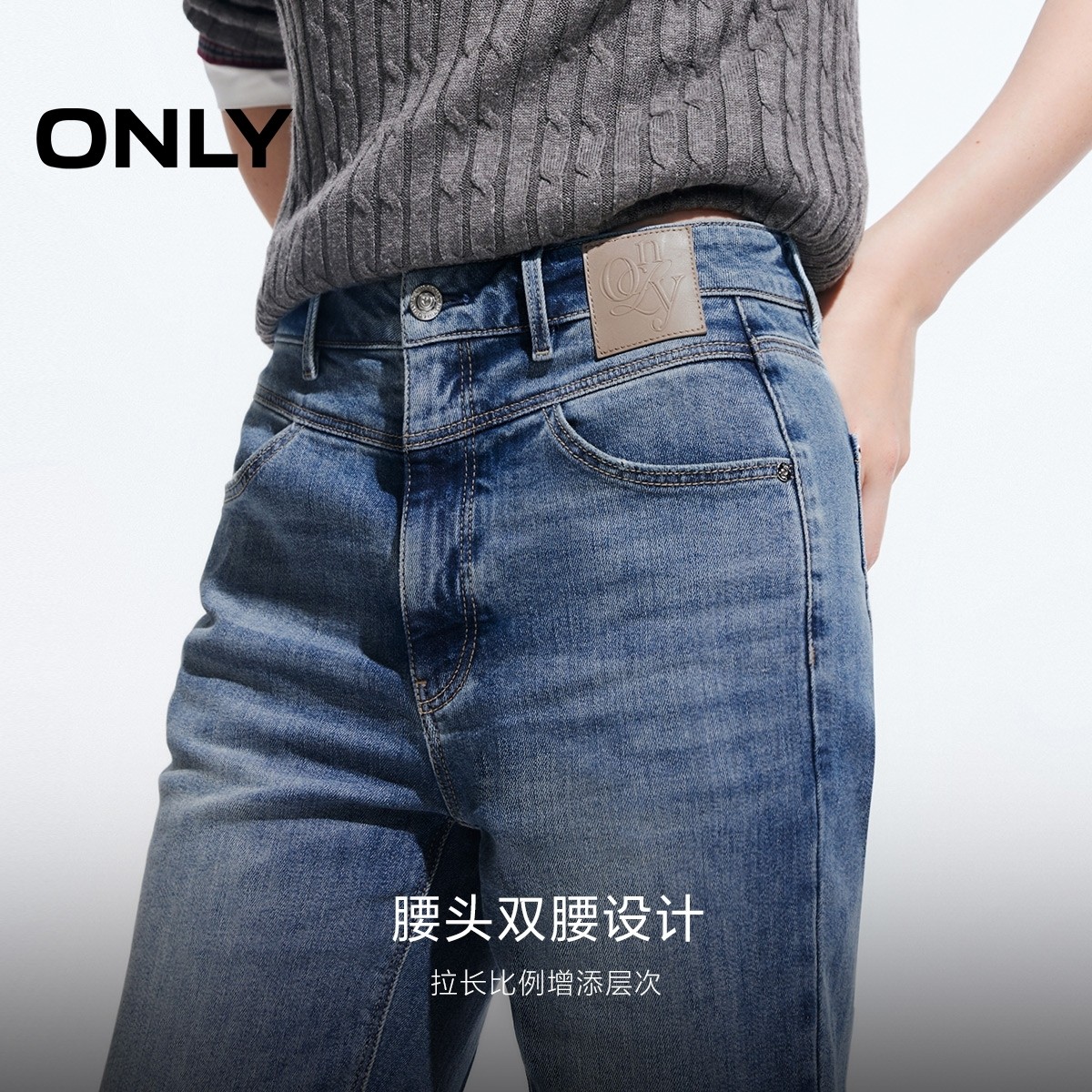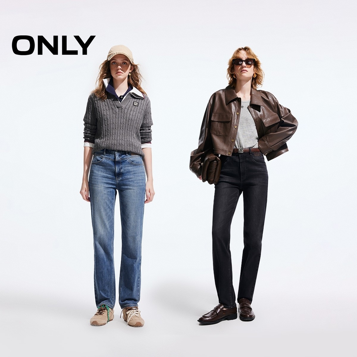 ONLY2025秋冬新款复古水洗通勤高腰九分裤窄版直筒裤牛仔裤女