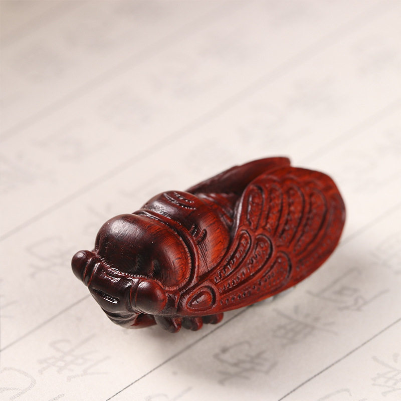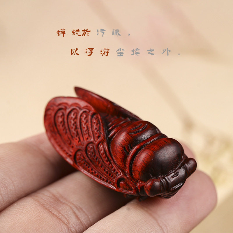 一鸣惊人】小叶紫檀绿檀香DIY木雕夏金蝉文玩手把件饰品配件吊坠