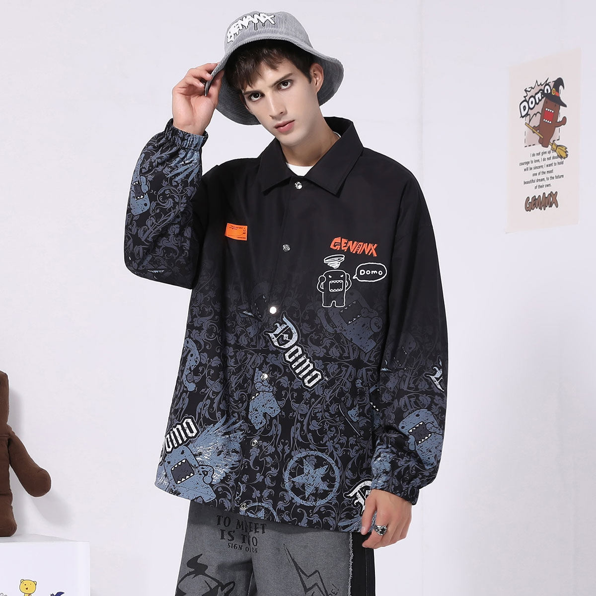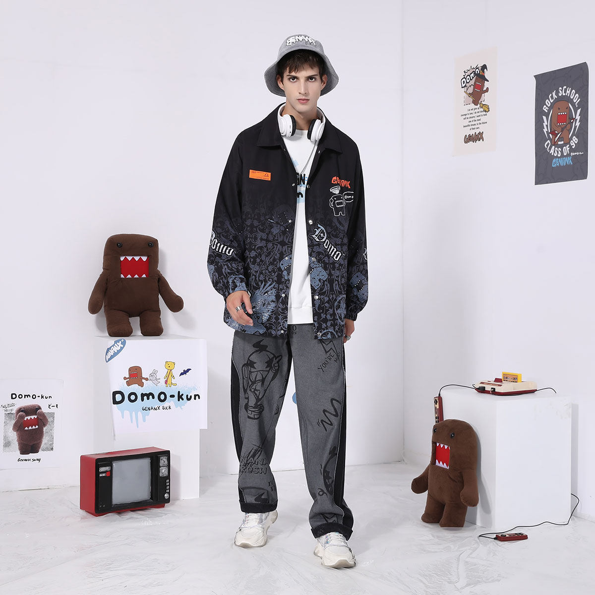 正品GENANX闪电潮牌domokun联名外套黑色印花单排扣夹克国潮青年