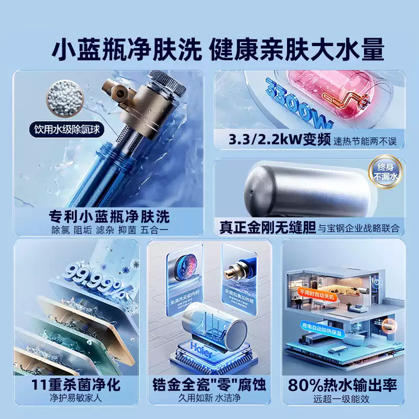 海尔热水器小蓝瓶以旧换新补贴家用电一级能效60升80升电热水器