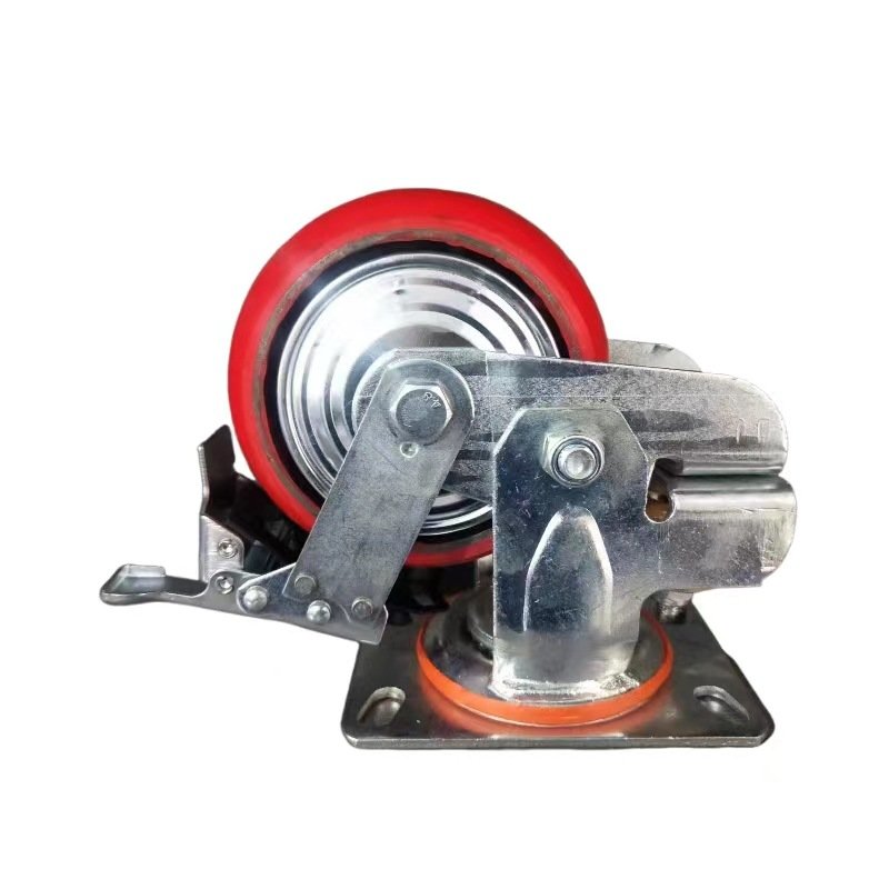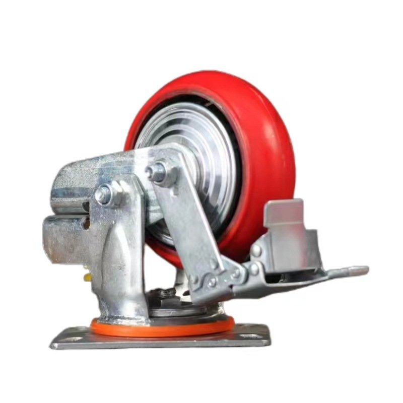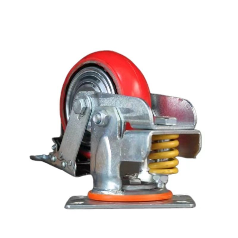 单弹簧减震脚轮 工业牵引设备轮定向/万向带刹车铁芯PU轮聚氨酯轮