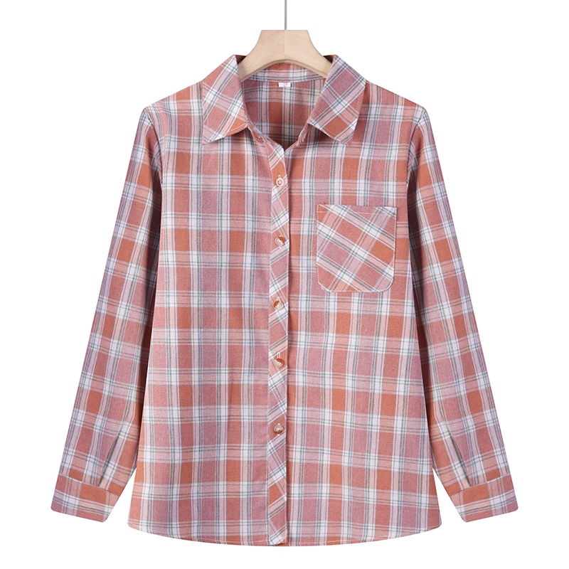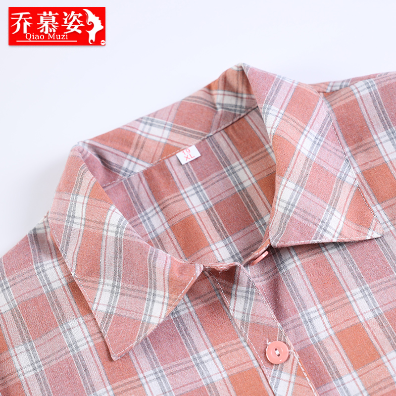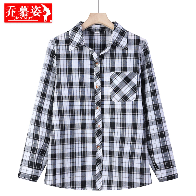 中老年女装妈妈春装格子全棉衬衣奶奶秋季宽松长袖纯棉衬衫老太太