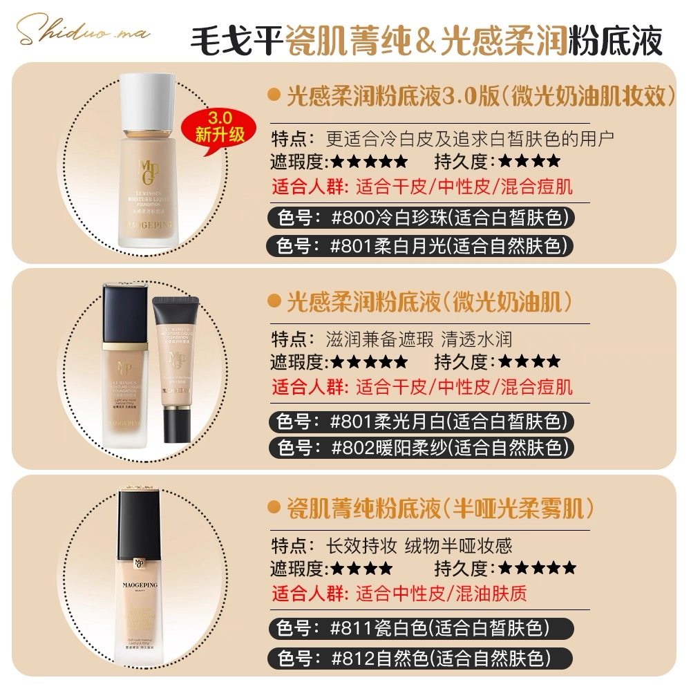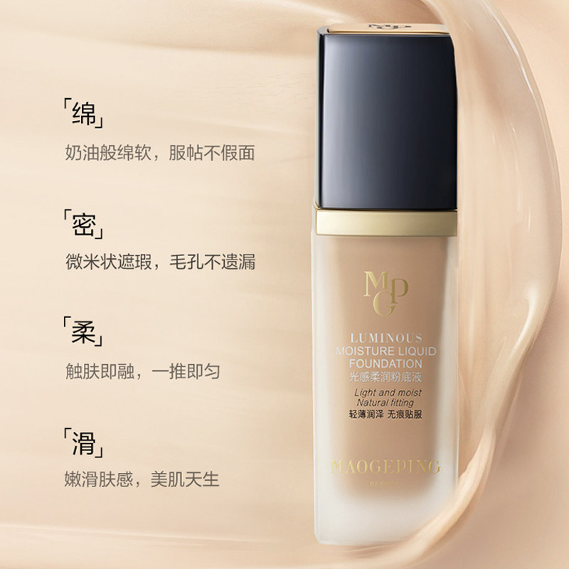 毛戈平光感柔润奶油火花粉底液防水防汗滋润干皮持妆