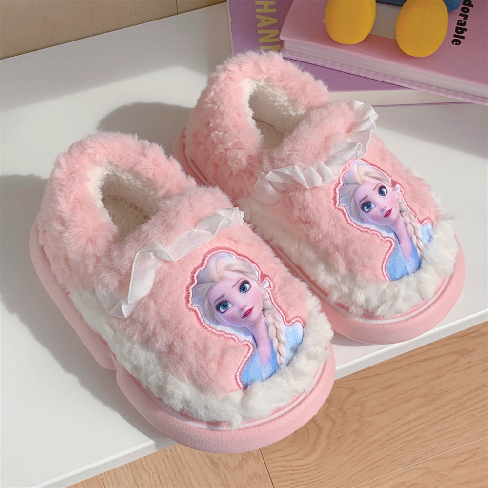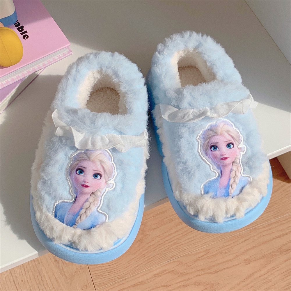 细细条冬季居家防滑保暖软底棉拖鞋可爱艾莎公主全包跟毛绒棉鞋