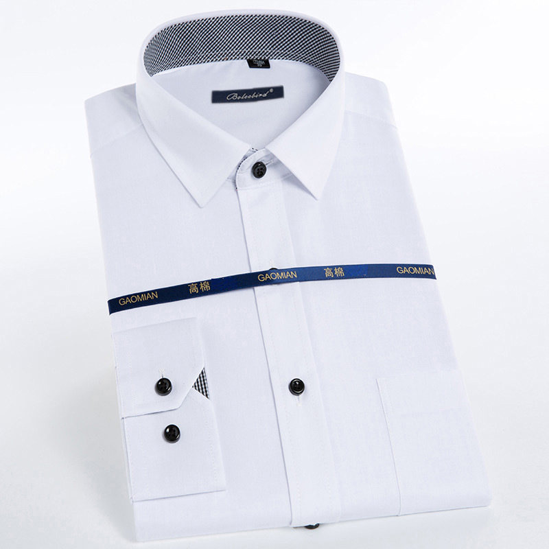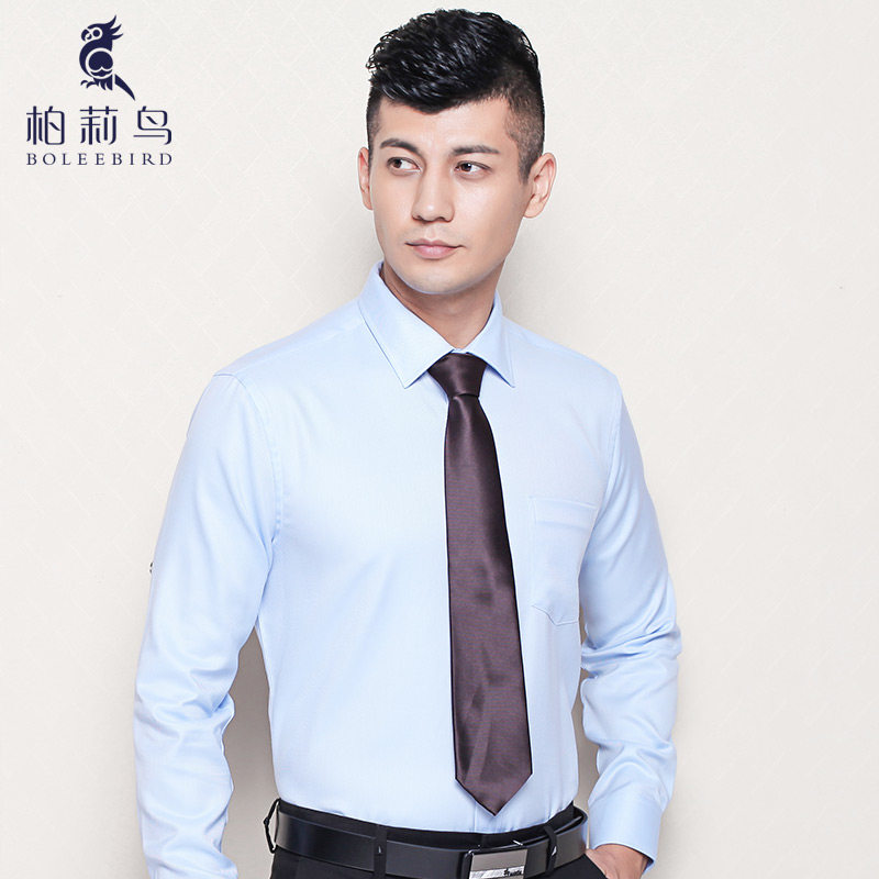 柏莉鸟白衬衫男士长袖修身商务职业纯色寸衫正装工装衬衣大码男装