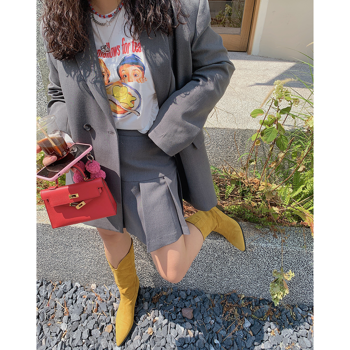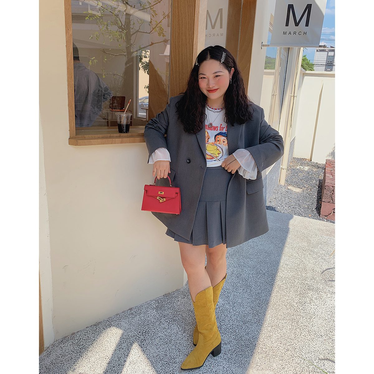 金大支休闲西装套装女春秋装2025新款高级感胖mm半身裙时尚两件套