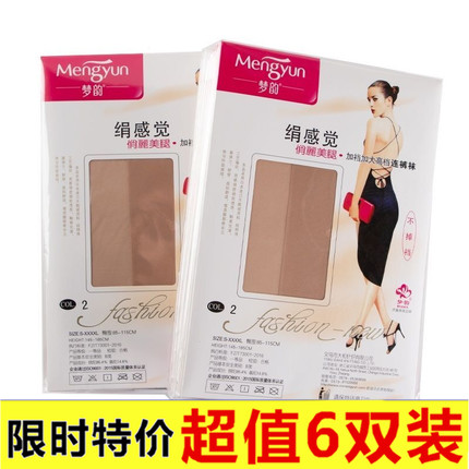 【6双装】正品梦韵6138超薄丝袜长筒连裤袜绢感觉加档加大防勾丝