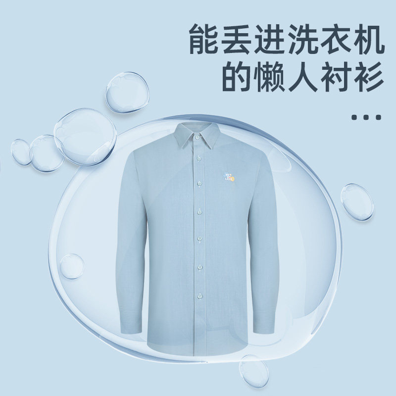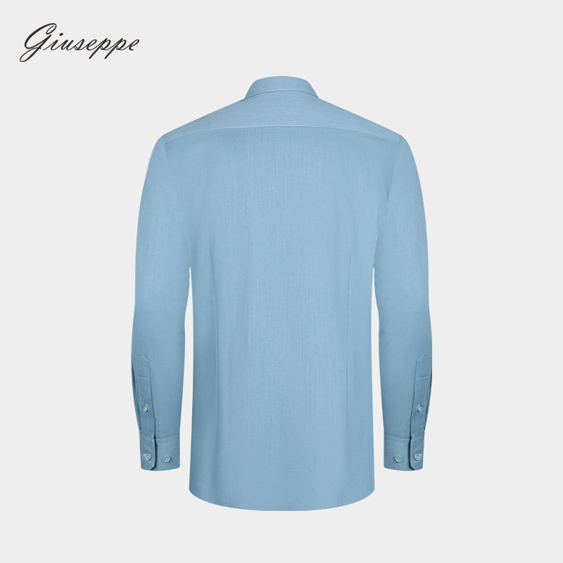 乔治白男士秋冬季时尚长袖尖领淡蓝色带刺绣衬衫修身微弹商务休闲