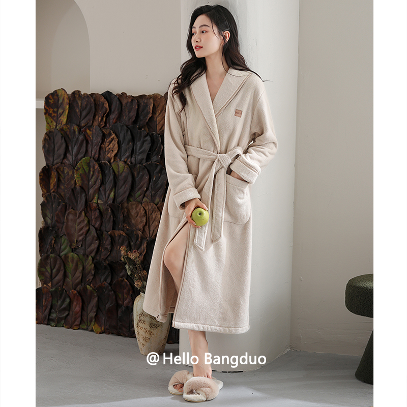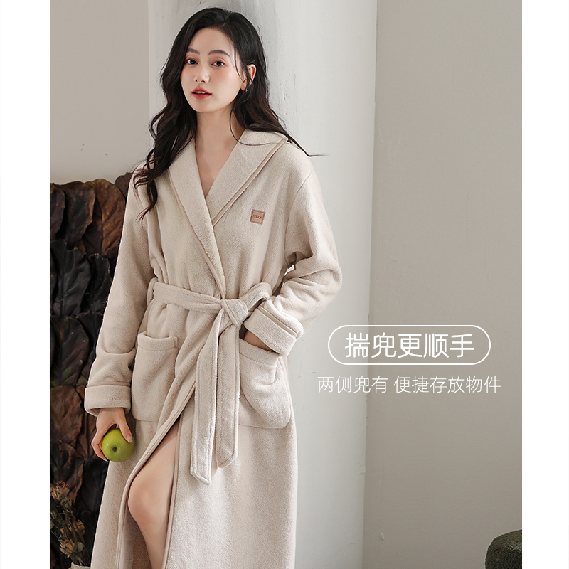 睡袍女士冬季珊瑚绒加厚加绒长款睡衣秋冬款法兰绒浴袍大码家居服