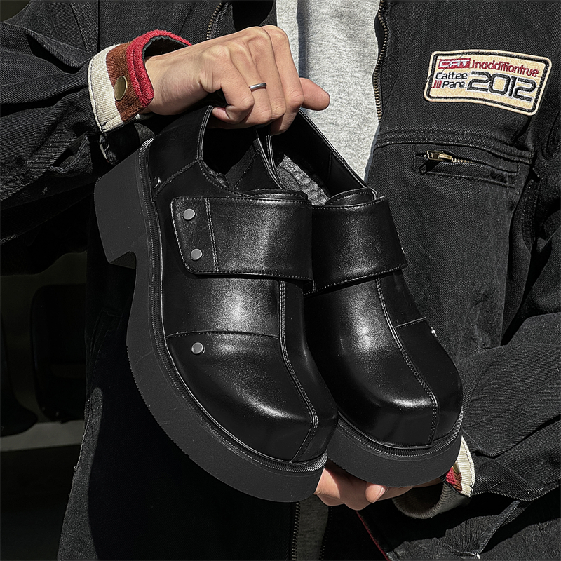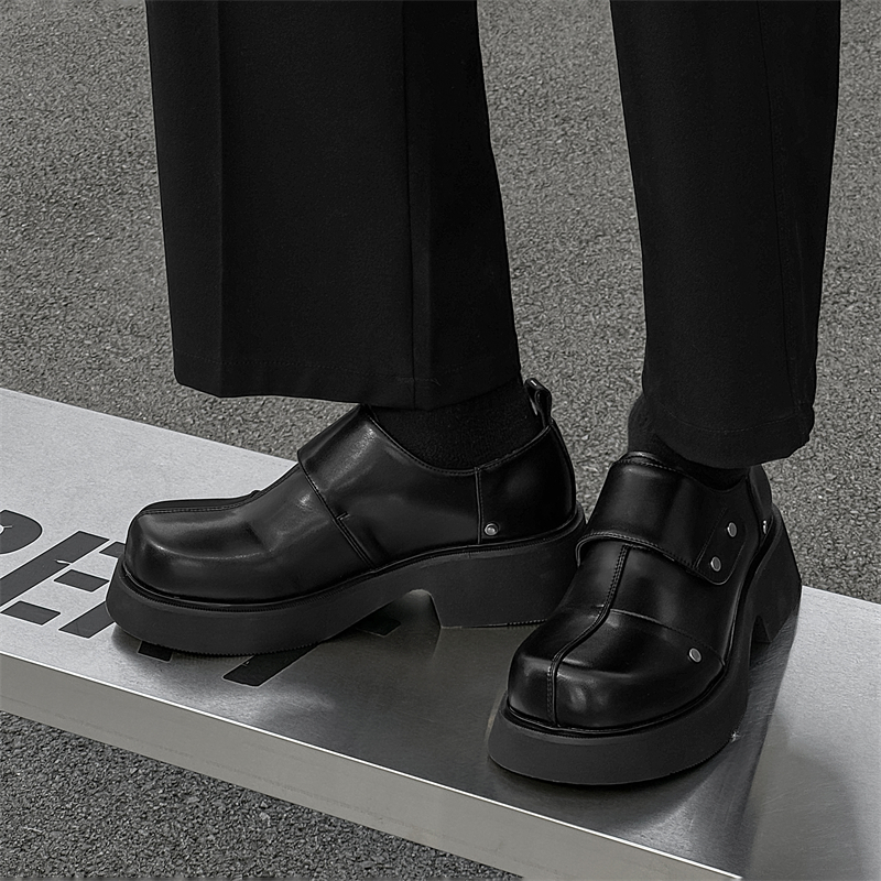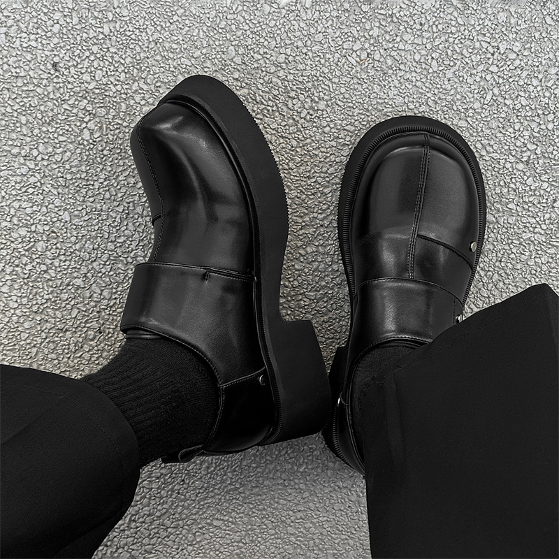 德比鞋男高级感厚底增高英伦风懒人一脚蹬乐福鞋大头休闲皮鞋潮