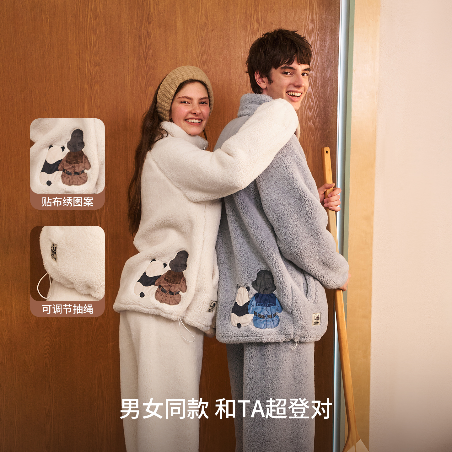 TeenieWeenie抗静电法兰绒睡衣女冬季加绒加厚珊瑚绒家居服套装男