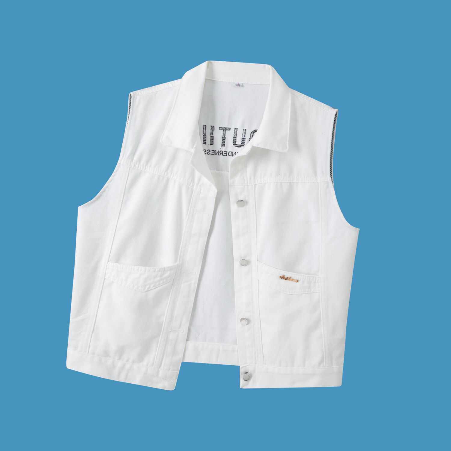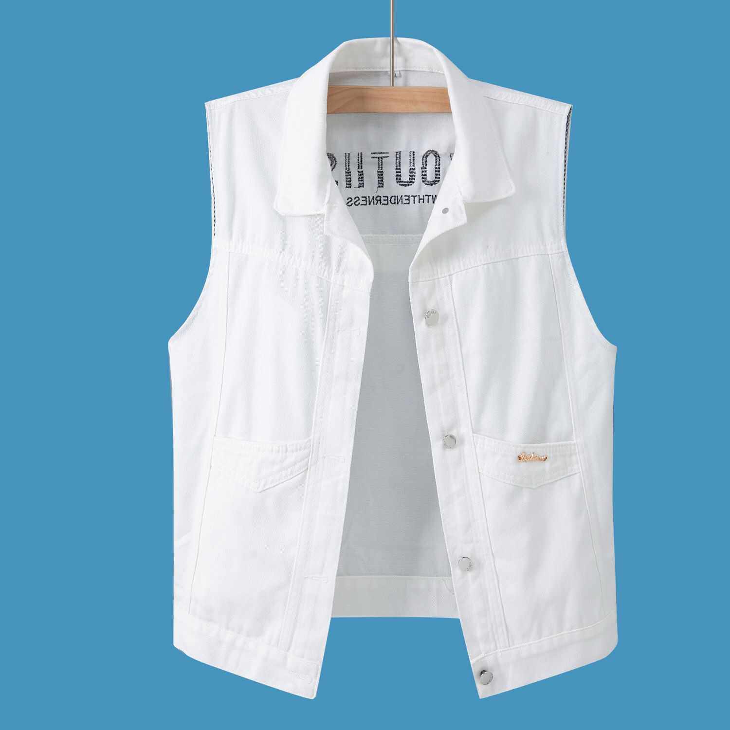 2024年新款韩版宽松马夹背心上衣刺绣白色牛仔马甲短外套男春夏装