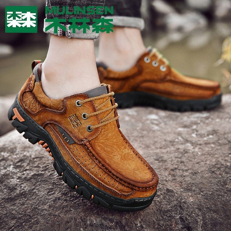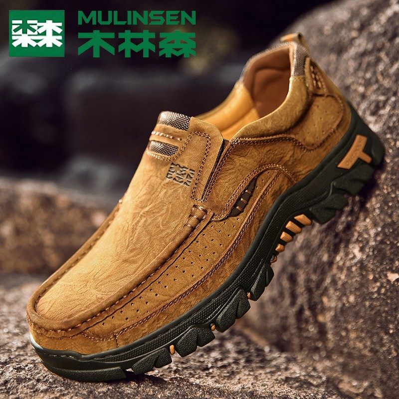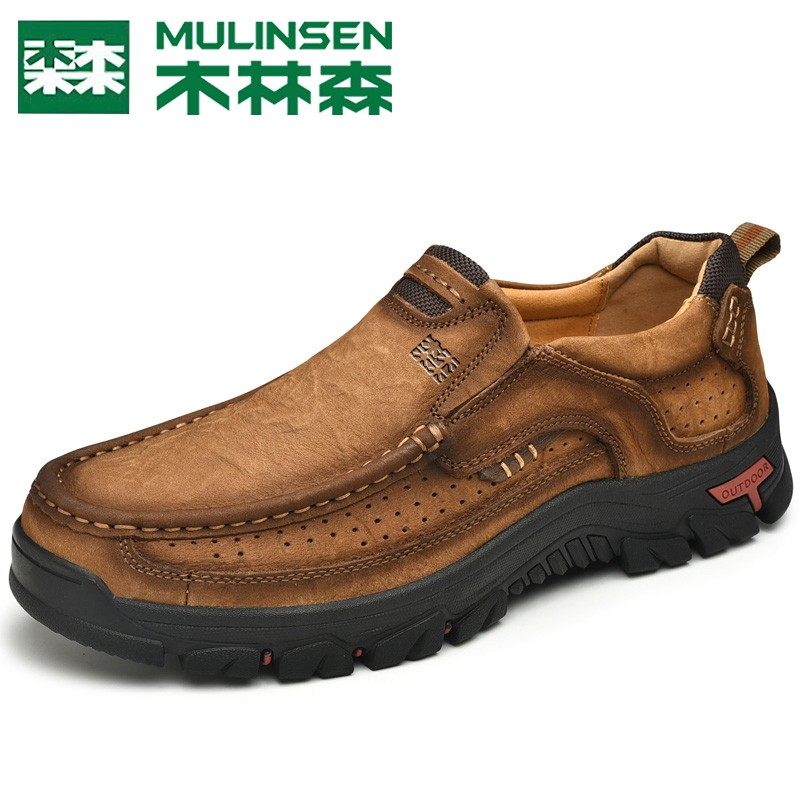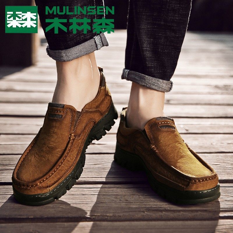 木林森男鞋正品头层牛皮男士户外休闲大头皮鞋真皮软底工装鞋爸爸