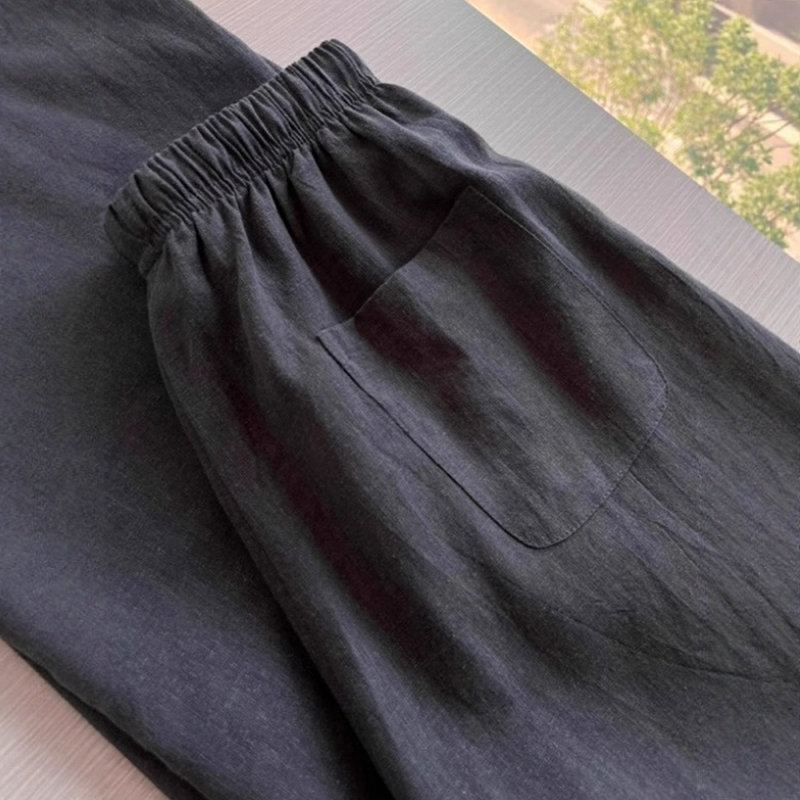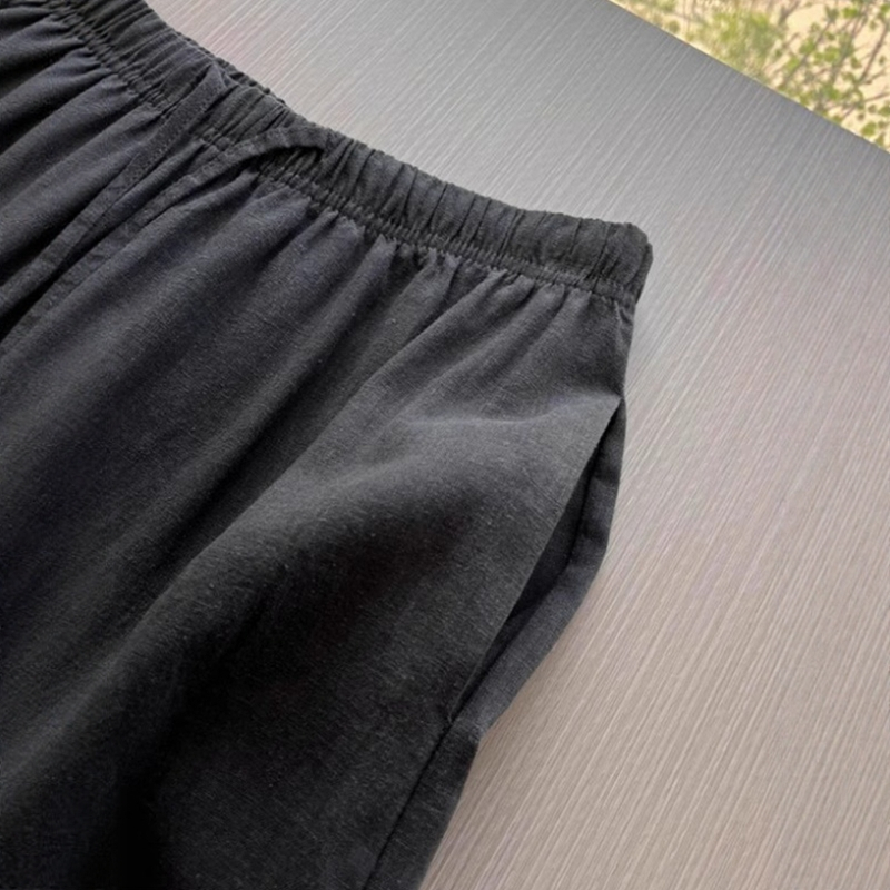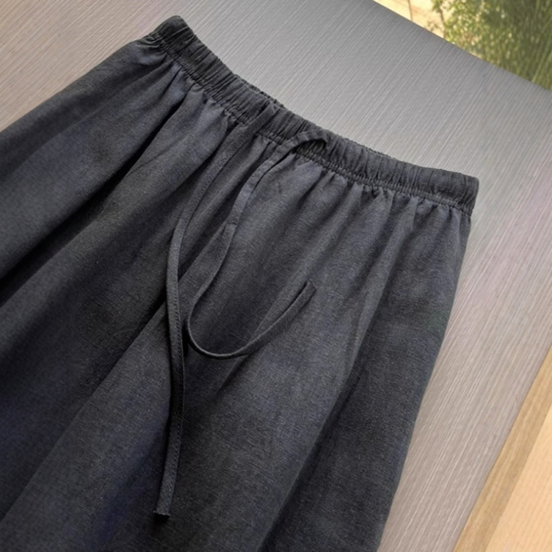 杭州四季青高端爆款~灰色棉麻松紧腰阔腿裤女夏季垂感休闲直筒裤