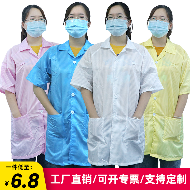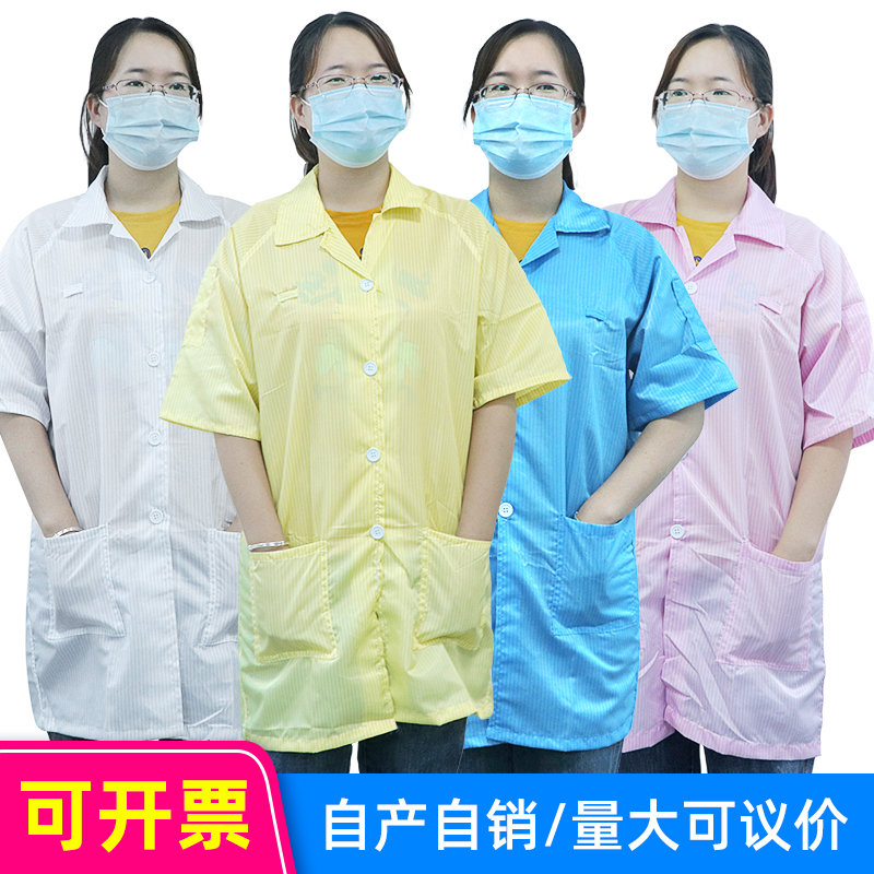 防静电衣服短袖大褂拉链上衣网格富士康电子厂无尘车间男女工作服