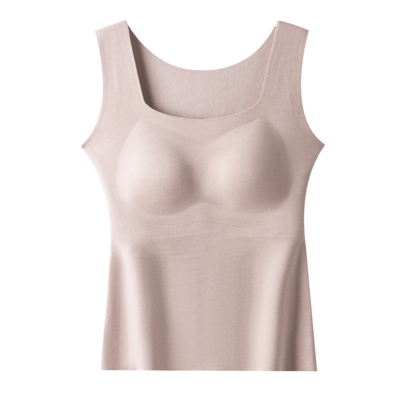 日本品质山茶花莱赛尔保暖背心女士带胸垫一体可外穿吊带加绒内搭