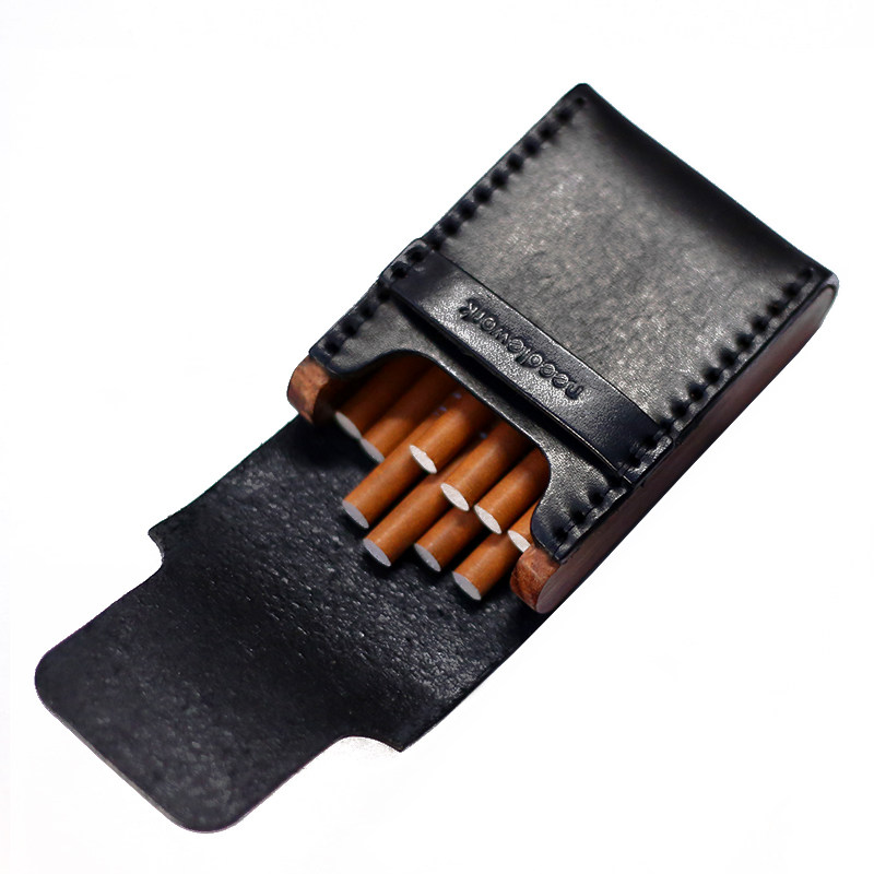 两针一线烟盒实木便携盒装黑色