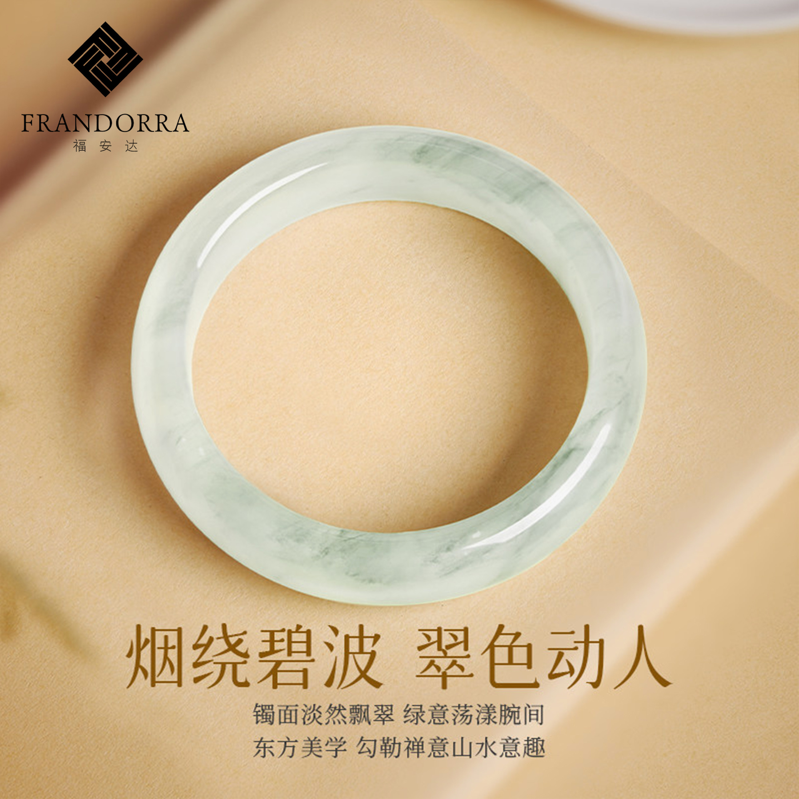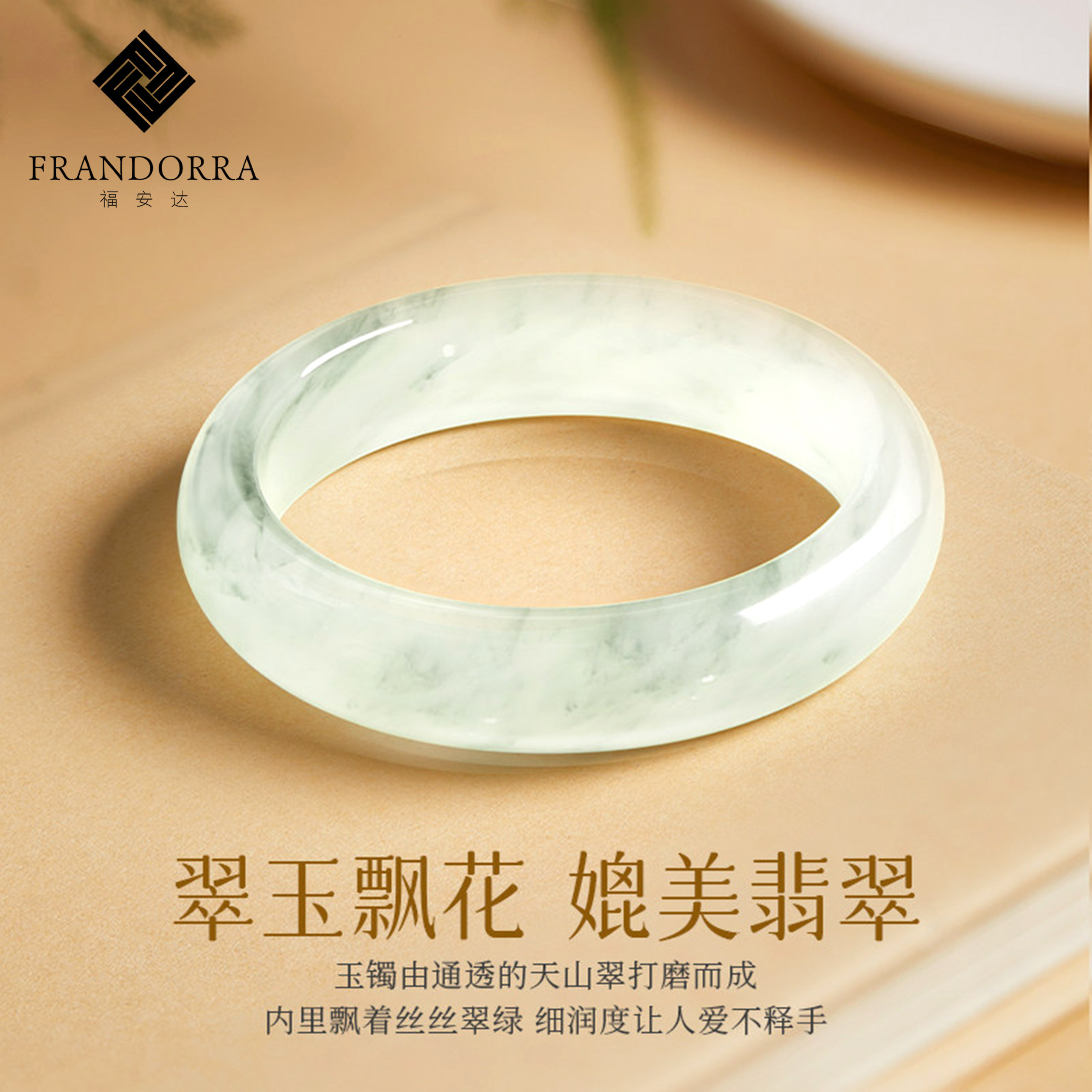 福安达天然天山翠手镯冰翠新疆玉石宽条镯子正品女款高冰飘花玉镯