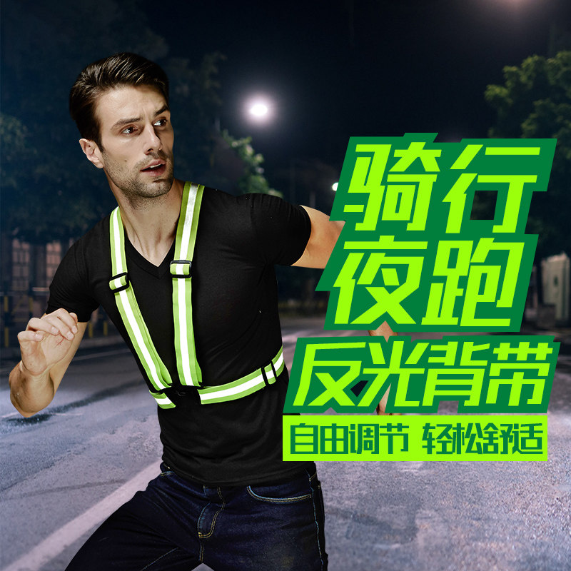 夜间跑步弹性反光腰带骑行安全荧光背带户外运动装备束腰带可调节