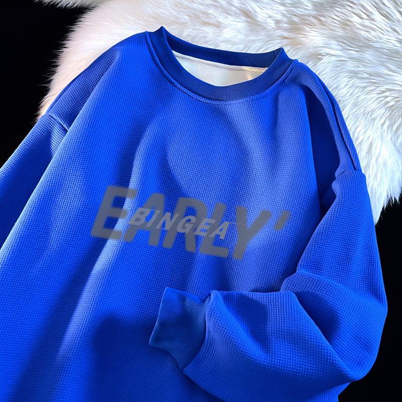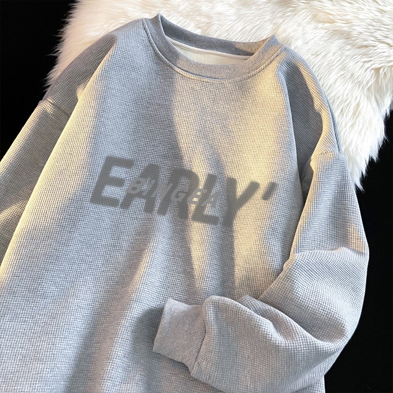 2023春季华夫格圆领卫衣男oversize加肥加大码套头衫胖子内搭上衣