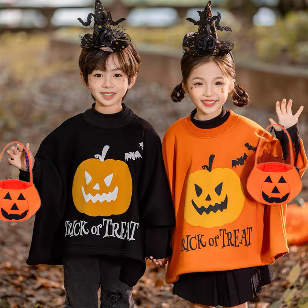 万圣节女童服装儿童cosplay服男孩女童南瓜蝙蝠衫斗篷宝宝表演服