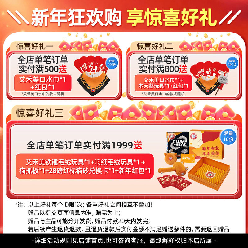 旗舰店|ArmHammer艾禾美猫砂膨润土矿石除臭尘控铁锤猫砂12.7kg