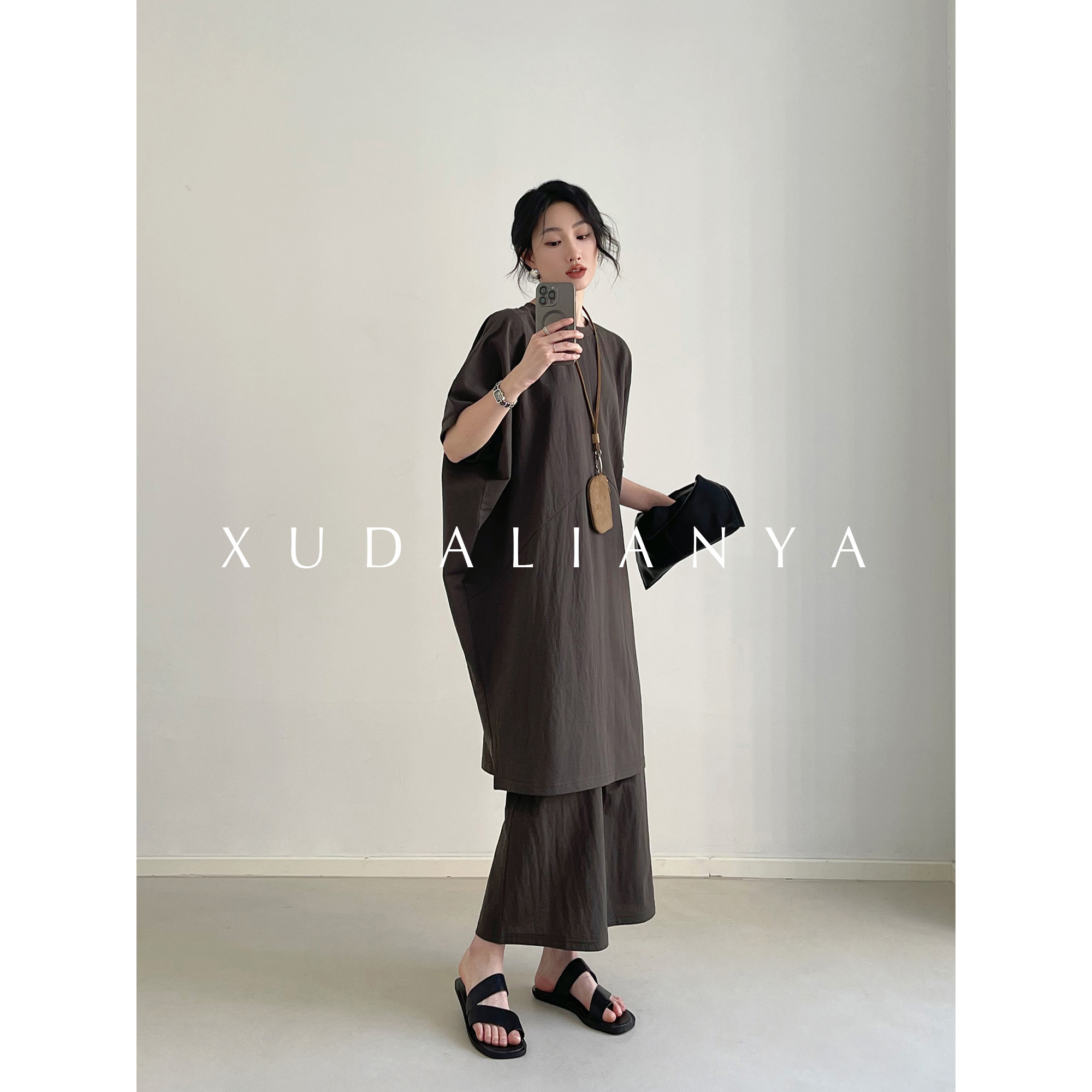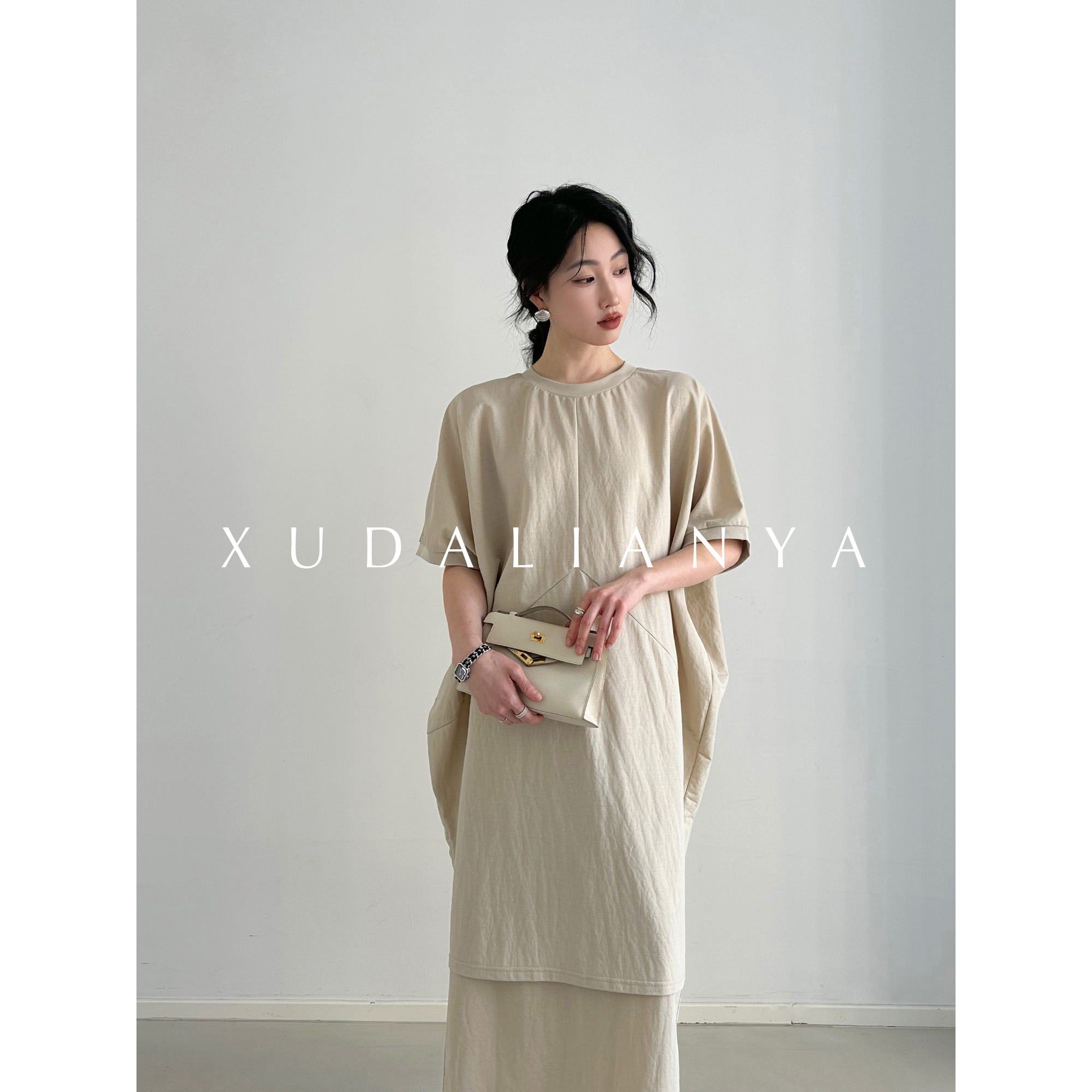 徐大脸吖定制 慵懒风套装裙春夏拼片式蝙蝠中长款半身裙两件套女