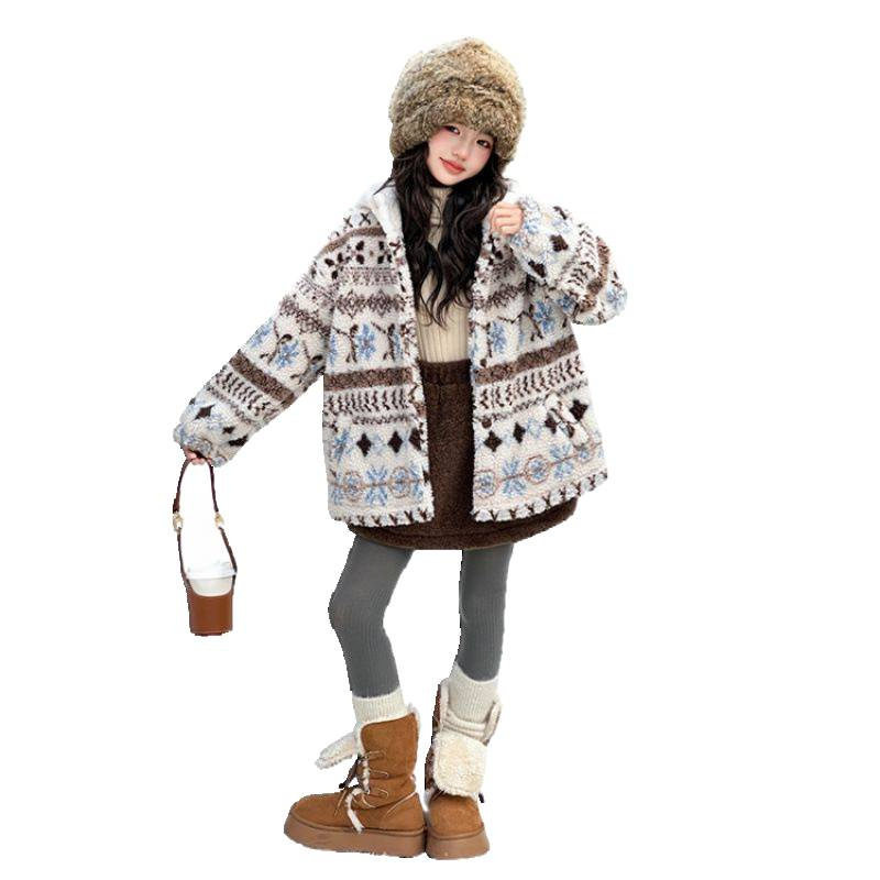 .女童外套冬装2025新款大童洋气加绒加厚毛毛衣冬季羊羔绒上衣.