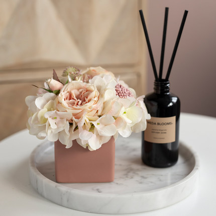 栀美家 韩式玫瑰花仿真花香薰花摆件现代客厅假花小盆栽香氛桌花