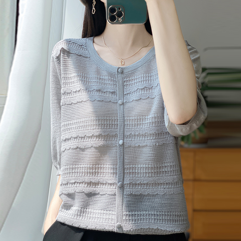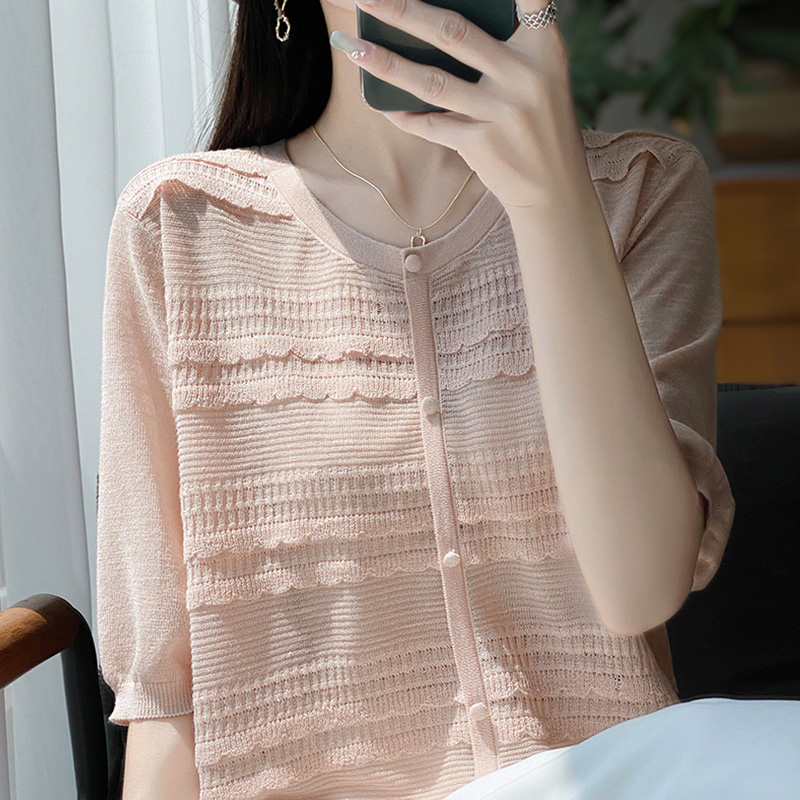 蕾丝时尚短袖t恤女夏季2025新款打底衫洋气大码女装冰丝针织上衣