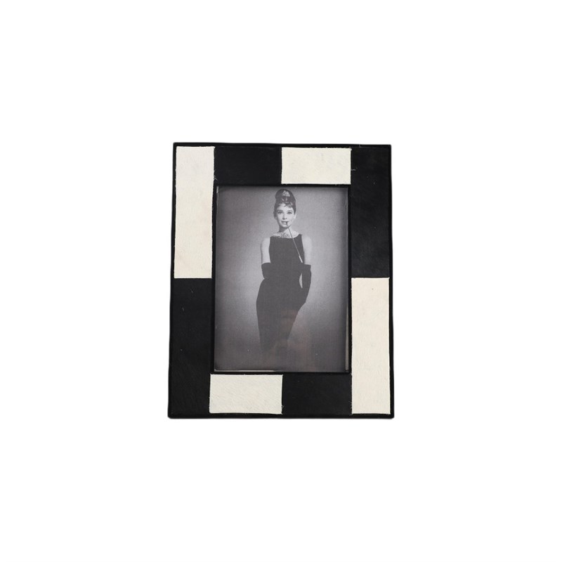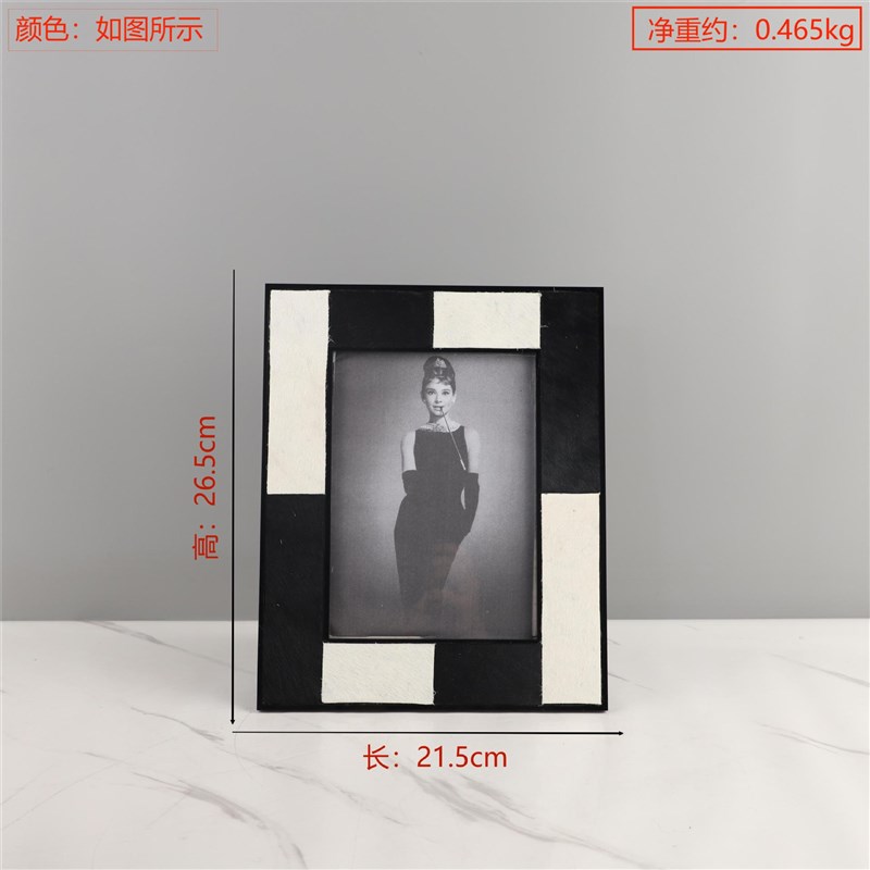 现代简约黑白拼接马毛相框桌面摆件客厅卧室床头柜书房家居装饰品