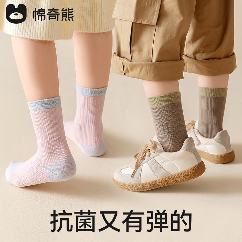 男童袜子纯棉儿童春秋款运动青少年女童中筒袜中大童纯色童袜棉袜