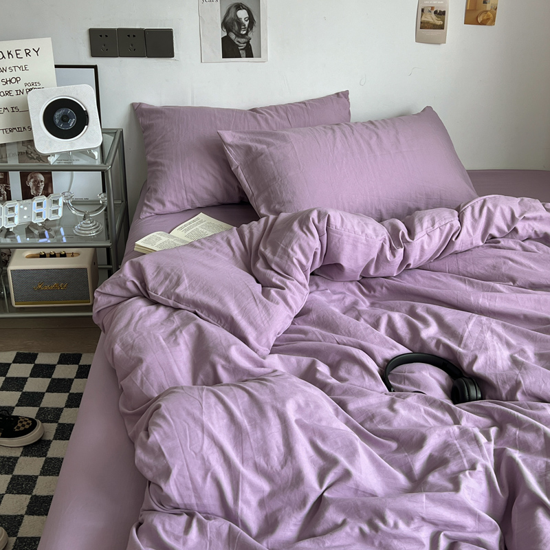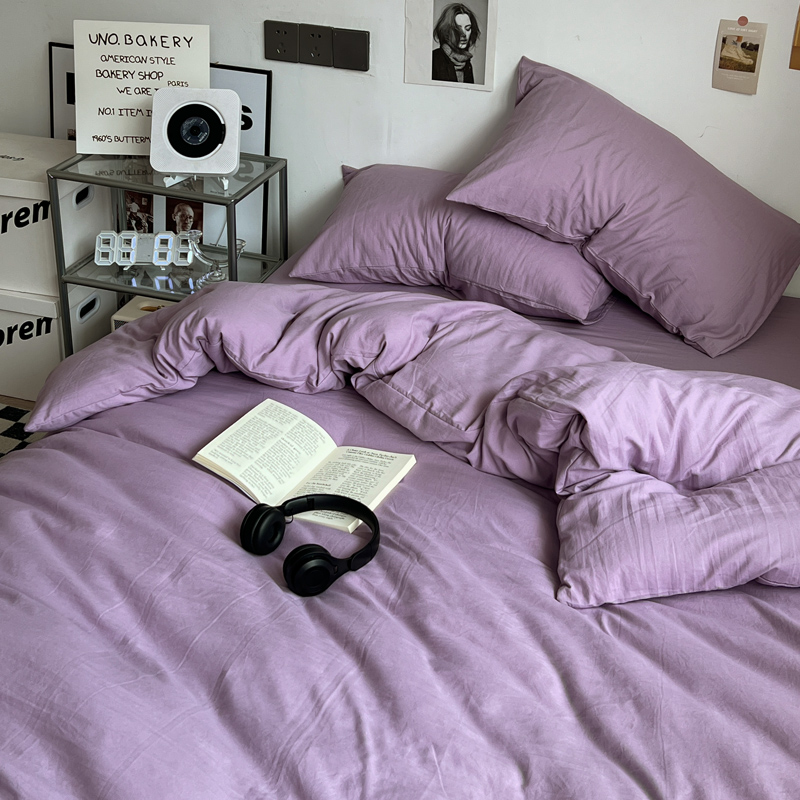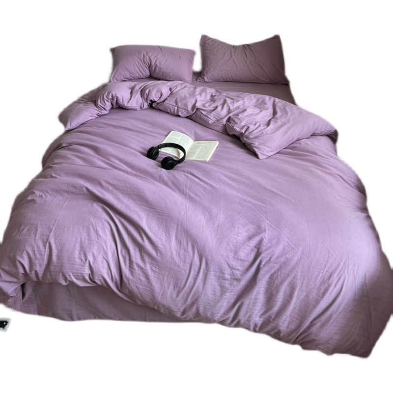 极简主义简约纯色四件套超柔亲肤水洗棉套件床单床笠宿舍学生被套