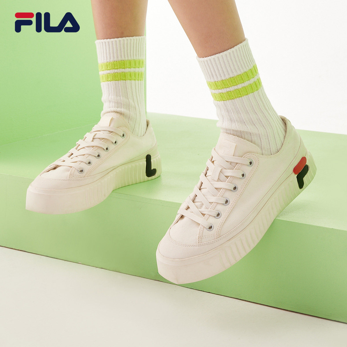 FILA斐乐帆布鞋女通透夏季百搭板鞋低帮休闲鞋小白鞋GEAR时尚女鞋