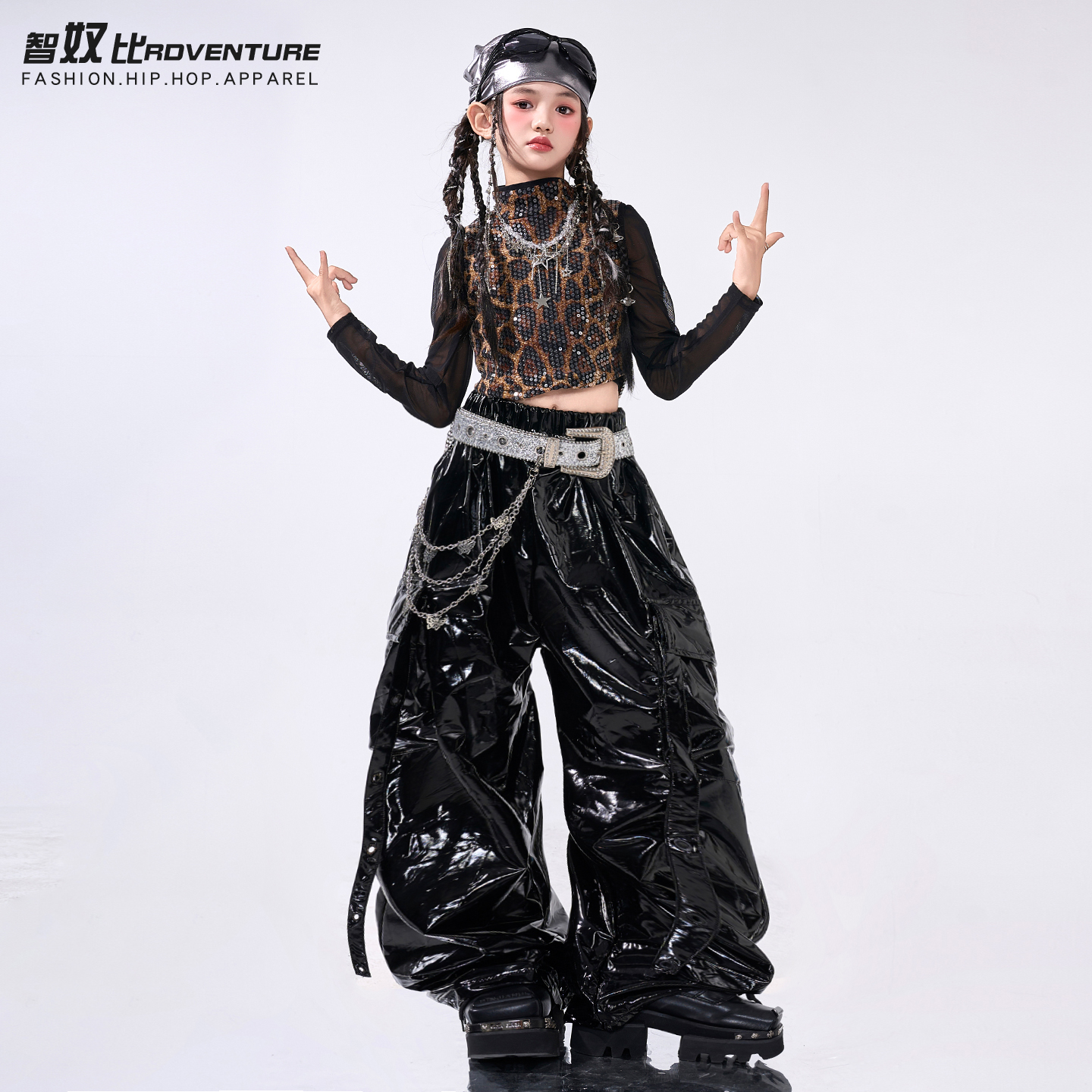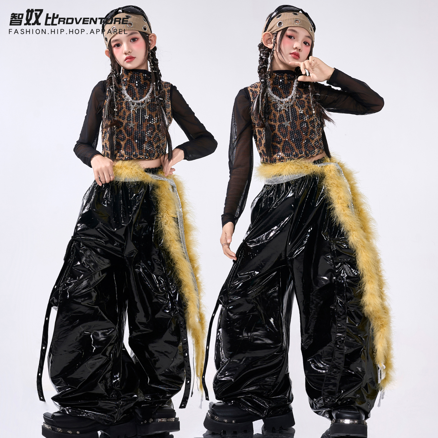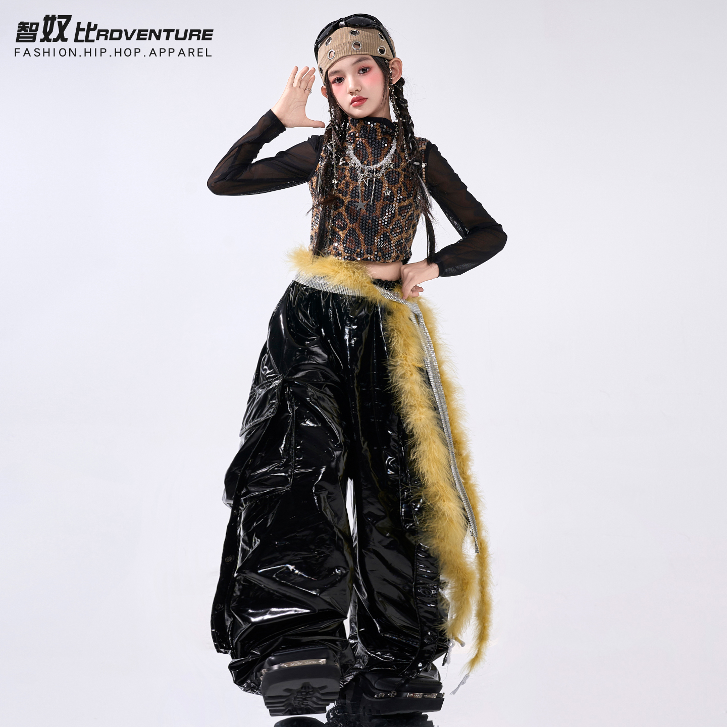 爵士舞女童服装女团舞蹈服豹纹背心套装街舞潮服jazz表演服演出服