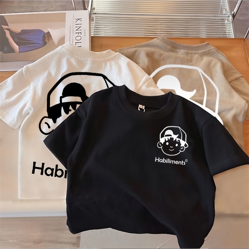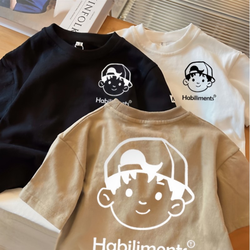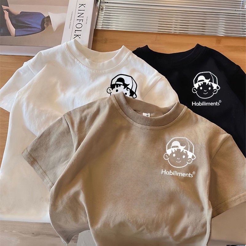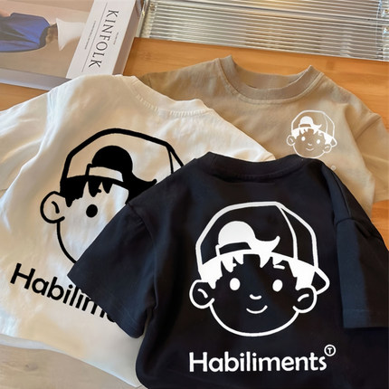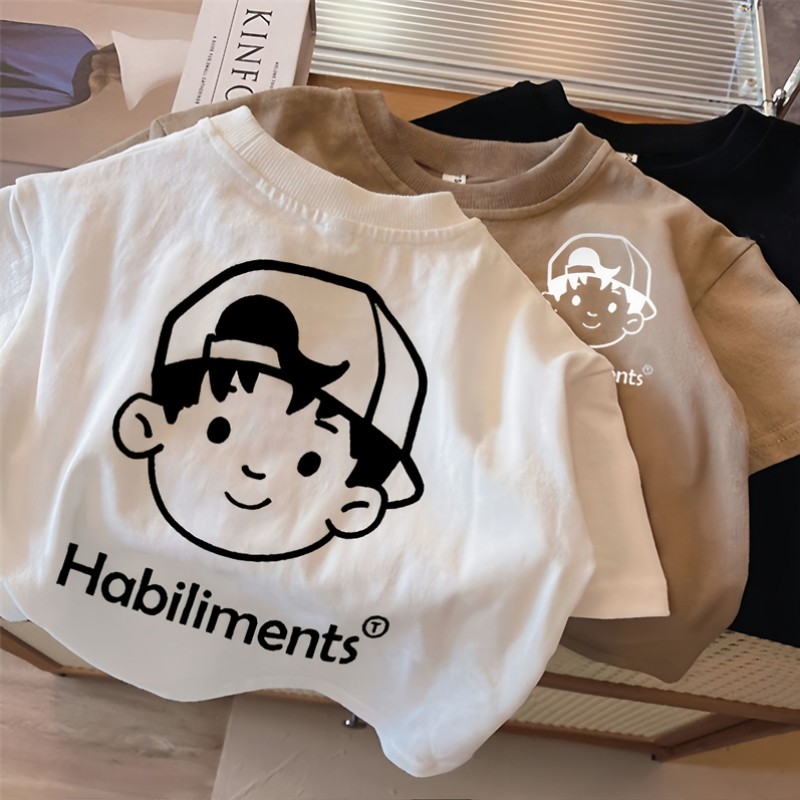 100纯棉男童短袖t恤潮牌夏款卡通男孩上衣儿童休闲港风中小童装女