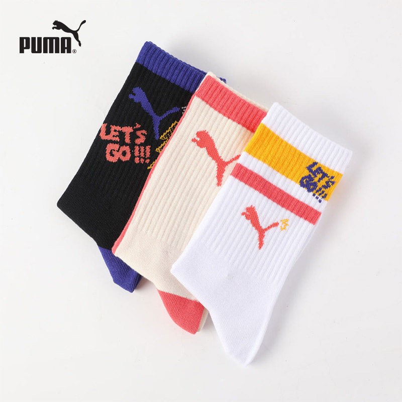 PUMA彪马袜子男女中大童成人高筒袜3双纯棉运动休闲吸汗透气长袜