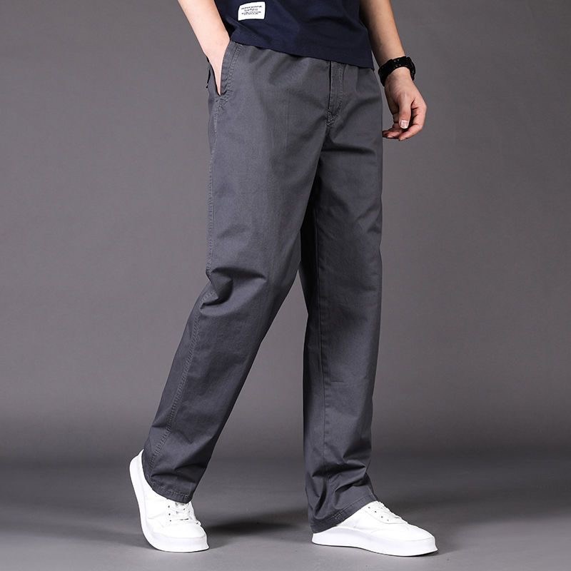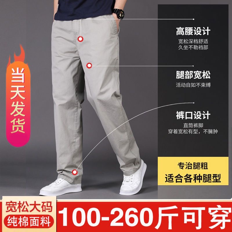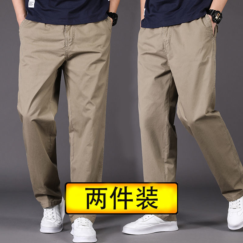春秋新款男士休闲裤纯棉宽松中年加大码百搭直筒裤户外工装裤子