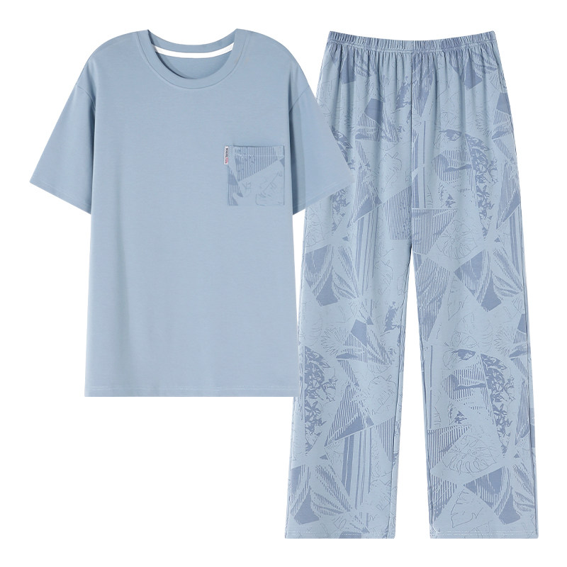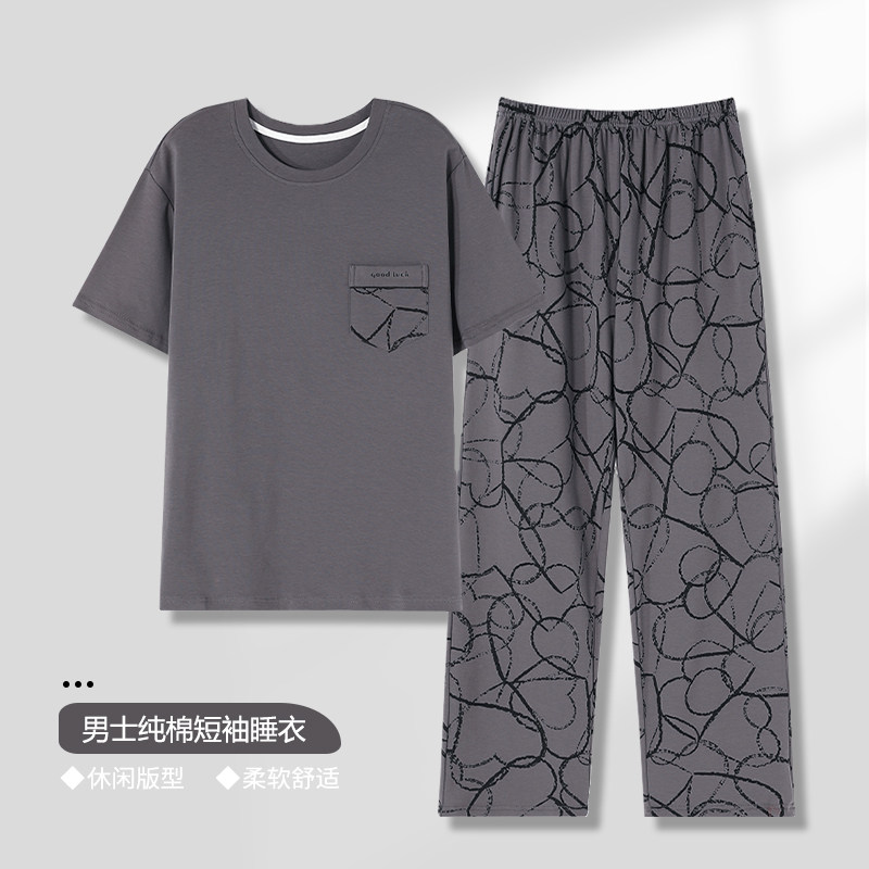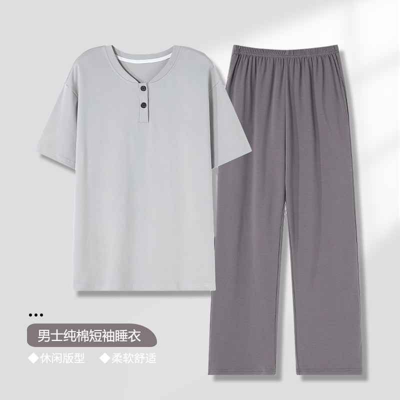 纯棉爸爸睡衣男夏季老人短袖长裤